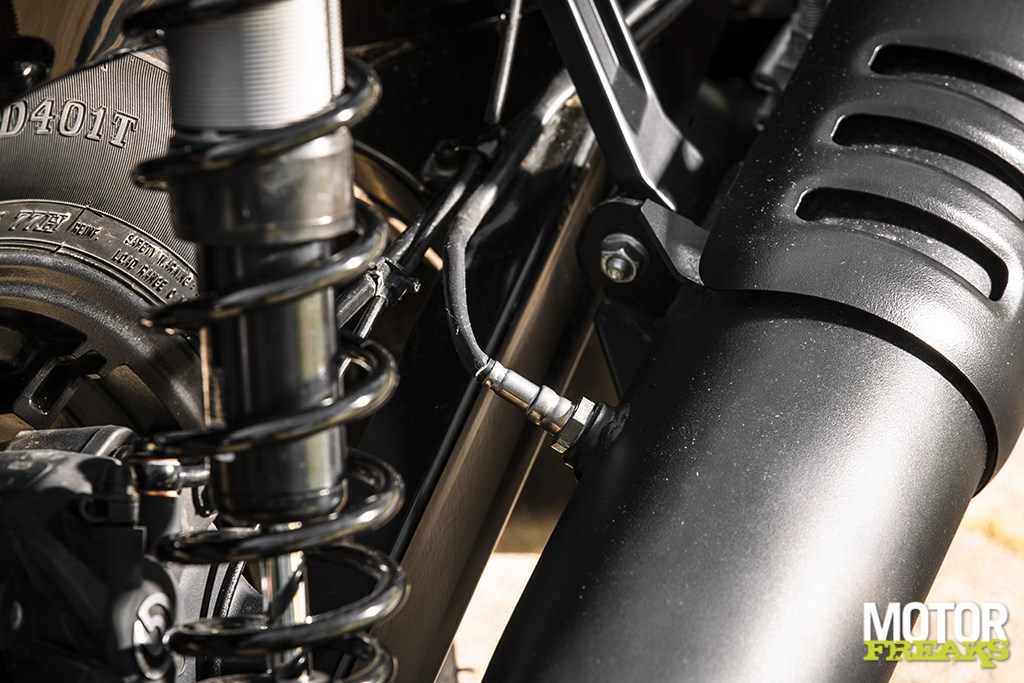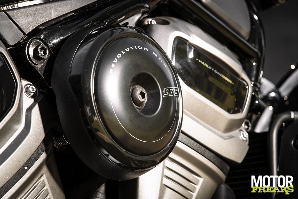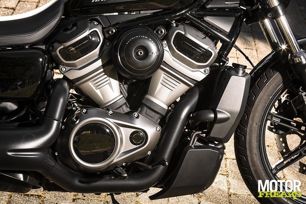 Hoe oogstrelend het design ook mag zijn wanneer je ‘m van een afstandje bekijkt, net als bij de vorig jaar gelanceerde Sportster S bekruipt mij het gevoel dat de Amerikanen alleen aan de rechterzijde oog voor detail hebben gehad. De rechterzijde oogt strak en perfect afgewerkt, met als blikvanger de nieuwe Revolution Max 975T V-twin, die een topvermogen van 90 pk bij 7.500 tpm en een maximum koppel van 95 Nm bij 5.000 tpm uit een cilinderinhoud van… inderdaad, 975cc haalt. Het enige dat wat netter had gekund is sinds Euro5 verplichte tweede lambdasonde achter de katalysator, die als lelijke puist aan de binnenzijde boven het uitlaatsysteem uitsteekt. Had daar geen nettere oplossing voor kunnen worden bedacht?