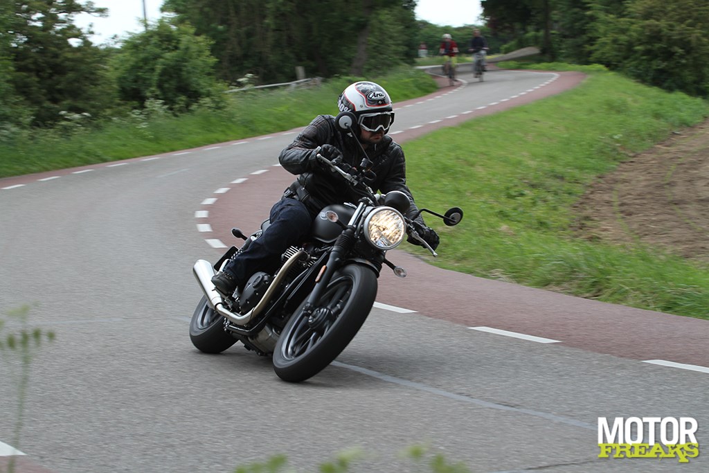 Mooie woorden van Harley-Davidson, maar wat daartegenover gezet? Harley heeft de Street Rod weliswaar gepositioneerd als tegenhanger van motoren als de MT-07, SV650, Z650 en Monster 797, maar alle lyrische woorden van Alan C. ten spijt lijkt ons dat voor de Street Rod te hoog gegrepen. Maar wat dan? “Een Street Twin,” suggereert Vincent. “Is ook een no-nonsense naked, richt zich min of meer op dezelfde doelgroep en ligt ook wat prijs betreft in lijn met die Amerikaan.” Vooruit, 600 euro duurder dan, maar een kniesoor die daarover zeurt.” Bellen met Triumph Benelux in Alkmaar dan maar, die voor ons op dezelfde korte termijn wel een Street Twin beschikbaar heeft. Tenminste, als we ’t niet erg vinden om met 35 kW op pad te gaan, want de beschikbare demo is op 35 kW teruggetuned. En niet zonder reden: met de Street Twin richt Triumph zich op een nieuw en jong publiek dat nog maar net z’n