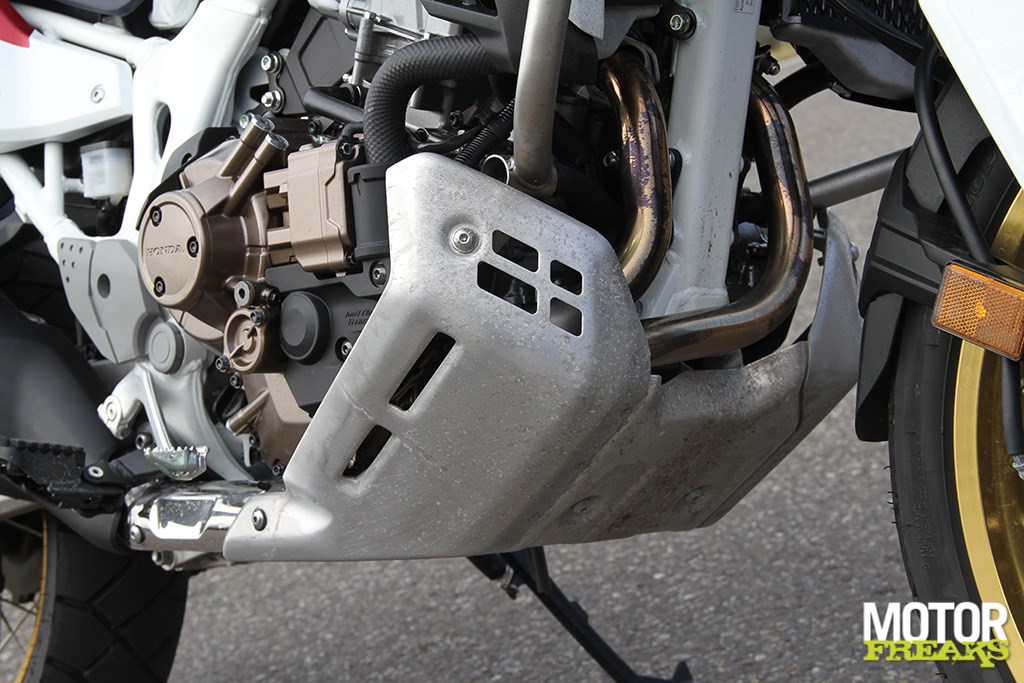 Dat het blok veel levendiger (en daarmee ook karaktervoller) aanvoelt heeft de Africa Twin ook te danken aan de balansassen, waar 300 gram aan gewicht is bespaard, waardoor ook de inertia enorm is verlaagd. Wat elektronische snufjes betreft kunnen net als bij de eerste Africa Twin vermogen (P), motorrem (EB) en tractie contole (HSTC) onafhankelijk van elkaar worden ingesteld, maar het grote verschil is dat de tractie controle nu 7 standen (plus uit) kent (was 3 plus uit). Wel is het jammer dat in alle drie de pre-set rijmodi Tour, Urban en Gravel de tractie controle op 6 staat en eerlijk gezegd begrijpen we dat ook niet. 3 voor Tour, 6 voor Urban en 1 voor