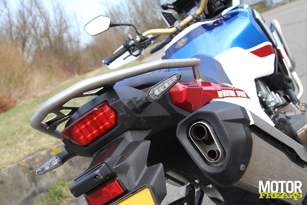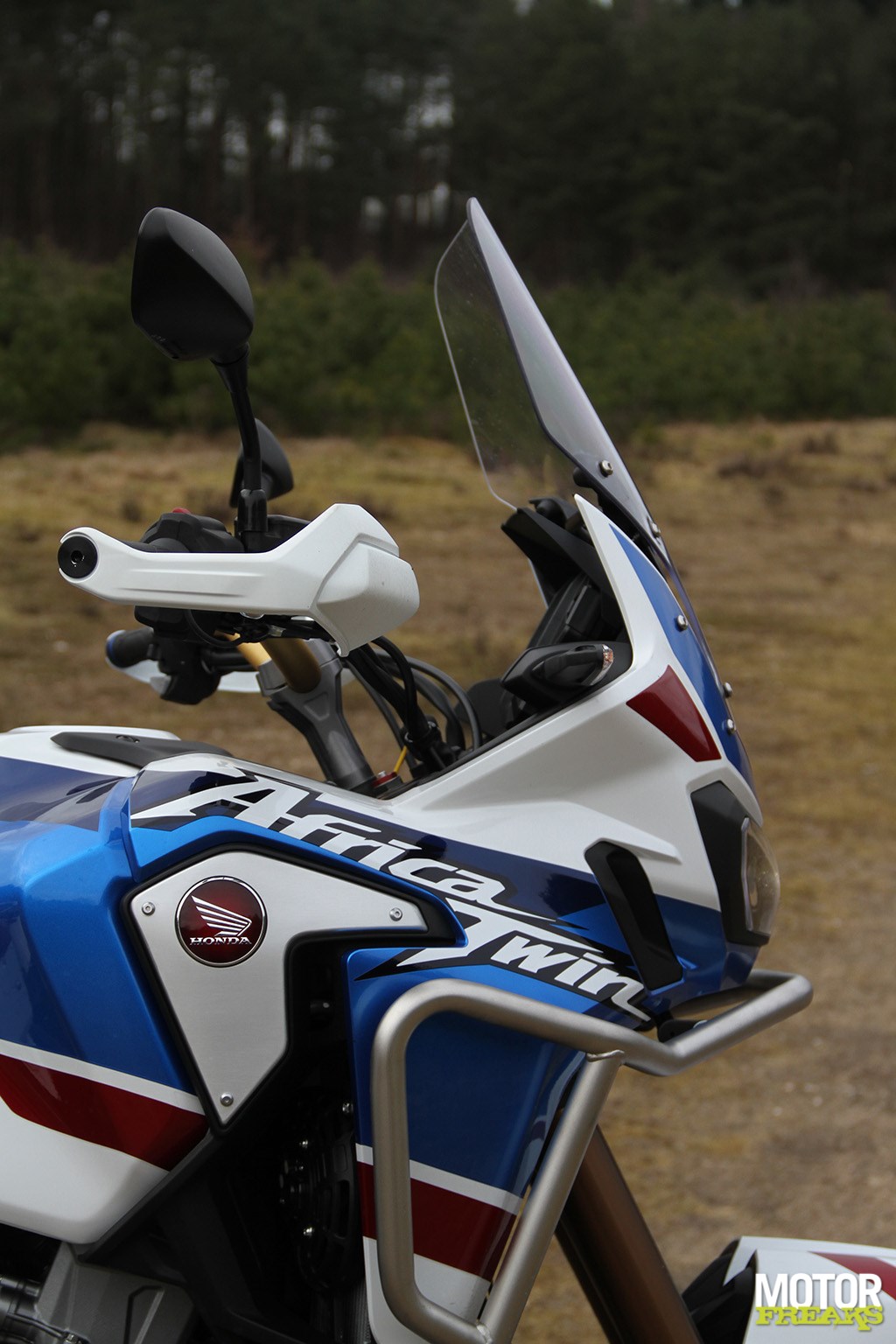 We hebben wel eens zachtere winters gehad. En betere handvatverwarmingen, dat ookengte nét tegen de rand van het windscherm aan. Daarnaast is de fiets hoger, een heel stuk hoger zelfs: 920 mm om precies te zijn en dat is 50 mm meer dan de standaard Africa Twin. Nu was de zit voor mij persoonlijk eigenlijk aan de (te) hoge kant (ik kreeg maar nét de tenen van een voet aan de grond), maar was voor mij niet storend genoeg om de moeite te nemen het zadel in de 20 mm lagere stand te zetten.