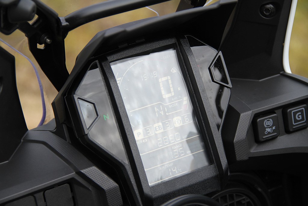 Gravel zou volgens ons veel logischer zijn geweest. De enige rijmodus die daarmee echt zinvol is, is de vierde User modus waarbij je de setting van Power (3), Engine Brake (3) en HSTC (7) naar eigen voorkeur kunt instellen. Of je moet het niet erg vinden om elke keer dat je van rijmodus switcht zelf de tractie controle naar de waarde die je zelf prettig vindt aan te passen, wat trouwens wel super gemakkelijk met de TC schakelaar links op het stuur kan worden gedaan.