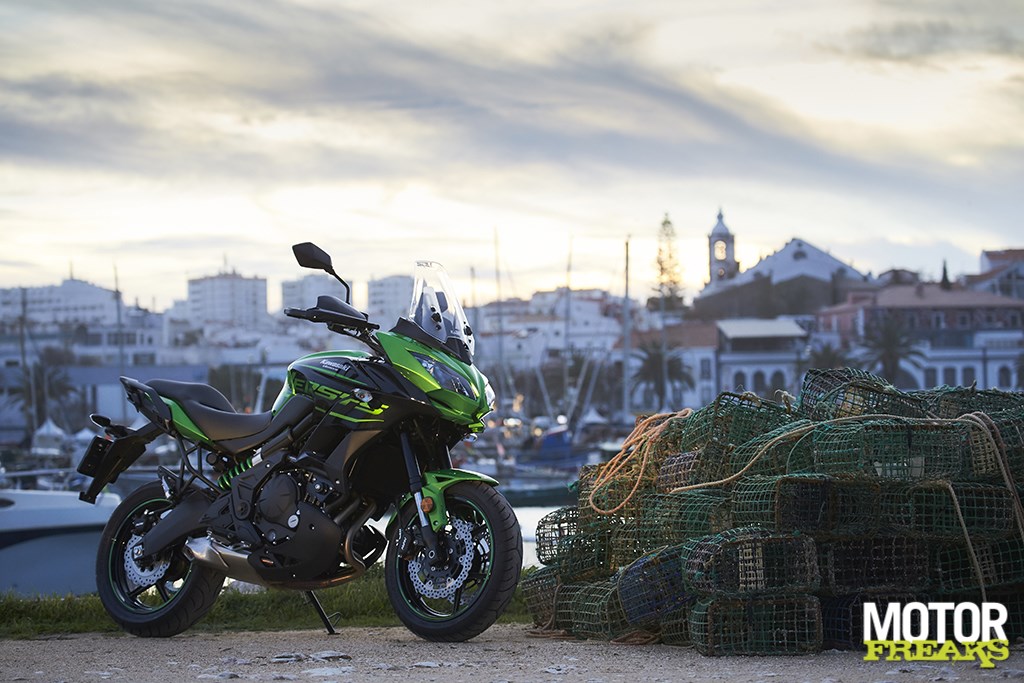 Hoe anders vergaat het me hier in nu in de Portugese Algarve. Kawasaki had voor de Benelux een introductie van de nieuwe Z1000R georganiseerd en daar ‘nu we d’r toch zijn’ de Versys 650 SE aan toegevoegd. Vanaf een pittoresk restaurant aan de Portugese kust maak ik me op voor een prachtige route van pak ‘m beet 125 kilometer die Kawasaki heeft uitgezet en die, zo blijkt al snel, de Versys 650 op het lijf geschreven lijkt te zijn. Alsof ze ’t erom hebben gedaan.