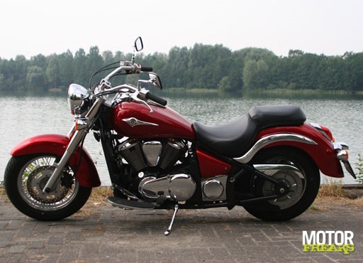 Soms zijn er van die motoren die je vanaf het begin verrassen. De Kawasaki VN900 was zo"n motor. Tenminste, voor wat mij persoonlijk betreft. Cruisers beginnen steeds meer "mijn ding" te worden, en dus was ik ook niet bepaald rouwig toen bij Kawasaki in Hoofddorp deze nieuwe cruiser mij buiten al stond op te wachten. Uitblinkend in opvallende eenvoud. Geen grappige cq. scheeuwende extra"s, geen speciale details of coole gadgets, maar pure eenvoud. Meest in het oog springend was nog wel de - in het zonlicht schitterende - diep rode kleur. Waar andere fabrikanten de moeilijkste dingen verzinnen om een motor maar hip en cool te maken gaat Kawasaki met de VN900 terug naar de essentie: relaxte houding, lekker toeren en dat alles zonder problemen. Want hoewel alles minimalistisch opgezet is, werkt het wel allemaal superbe.