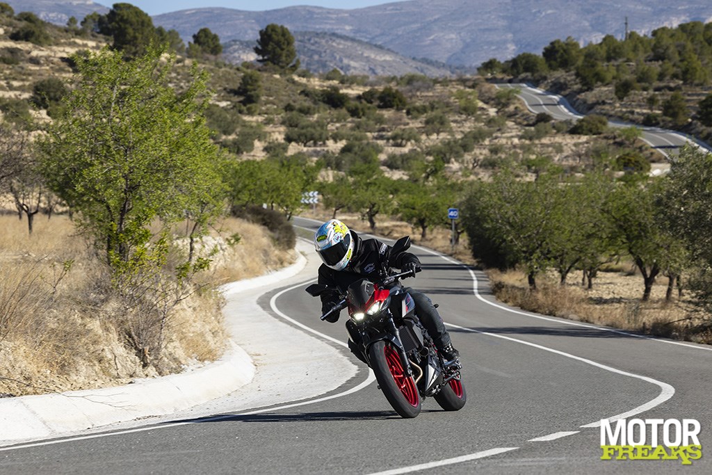 die beduidend betere zit en volwassen dankzij het blok dat van onderuit zo sterk aanvoelt dat je totaal niet meer het idee hebt met een vierenhalf A2-fietsje op pad te zijn. Om je een idee te geven: krappe rotondes nemen in vierde versnelling bij iets meer dan 30 km/u slikt de Z500 als zoete koek, waarna de motor erg mooi oppakt. Wat een verschil met z’n voorganger, die het liefst boven de 7.000 tpm wilde worden gehouden. Eenmaal in het berglandschap blijkt het overgrote deel van de route de derde versnelling te volstaan, met af en toe een uitstapje naar de tweede of vierde versnelling. Meer dan dat heb je in de bergen eigenlijk niet nodig.