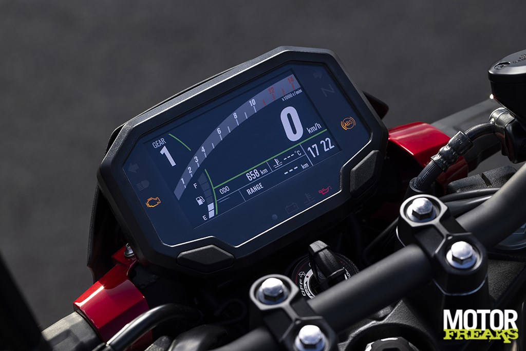 Dan het design. Hoewel nog steeds onmiskenbaar Z valt oog in oog met de nieuwe A2-Naked meteen op dat de SUGOMI stijlelementen behoorlijk zijn verfijnd, met een koplampunit die net effe wat agressiever oogt, met twee compacte ‘ogen’ voor het dimlicht en daartussen een enkele lamp voor het groot licht – hetzelfde ontwerp als de Z7 Hybrid. Kawasaki benadrukt dat ondanks z’n compactere vorm de lichtbundel van dimlicht juist breder is geworden en dat is wel zo lekker wanneer je in het donker rijdt. Net als z’n voorganger is zijn de koplamp en het achterlicht LED, en de SE-versie is bovendien van de fraaie platte LED-knipperlichten voorzien. Plaatsgenomen op de Z500 SE zie je meteen het grootste verschil met de standaard versie, die zoals gezegd bij ons in de Benelux niet zal worden gevoerd. Waar de gewone Z500 een nieuw LCD display heeft Kawasaki bij de SE versie het bekende 4,3” TFT-kleurendisplay met Bluetooth connectiviteit toegepast, waardoor nu dus ook het ‘kleintje’-Z aan de Kawasaki Rideology app kan worden gekoppeld en je dus vanaf de luie bank thuis de data van je motor kunt bestuderen.