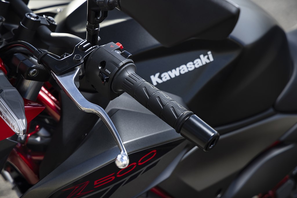Hoe rijk de historie van de Z ook moge zijn: dit is de allereerste Z500. Helaas geen instelbaar koppelingshendel, maar de bediening is wel vederlicht
