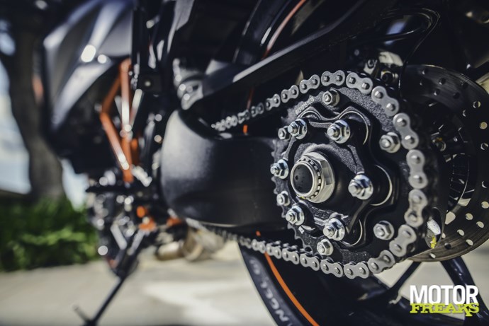 Toch willen we daar even beginnen. Het begint namelijk allemaal bij het blok. Als uitgang heeft KTM de tweecilinder direct overgenomen van de naked en de cijfers zijn dan ook gelijk (en ietsje eerlijker, de officiële opgave is nu 173 pk voor beiden), alleen is dit blok nu klaar voor Euro4. O