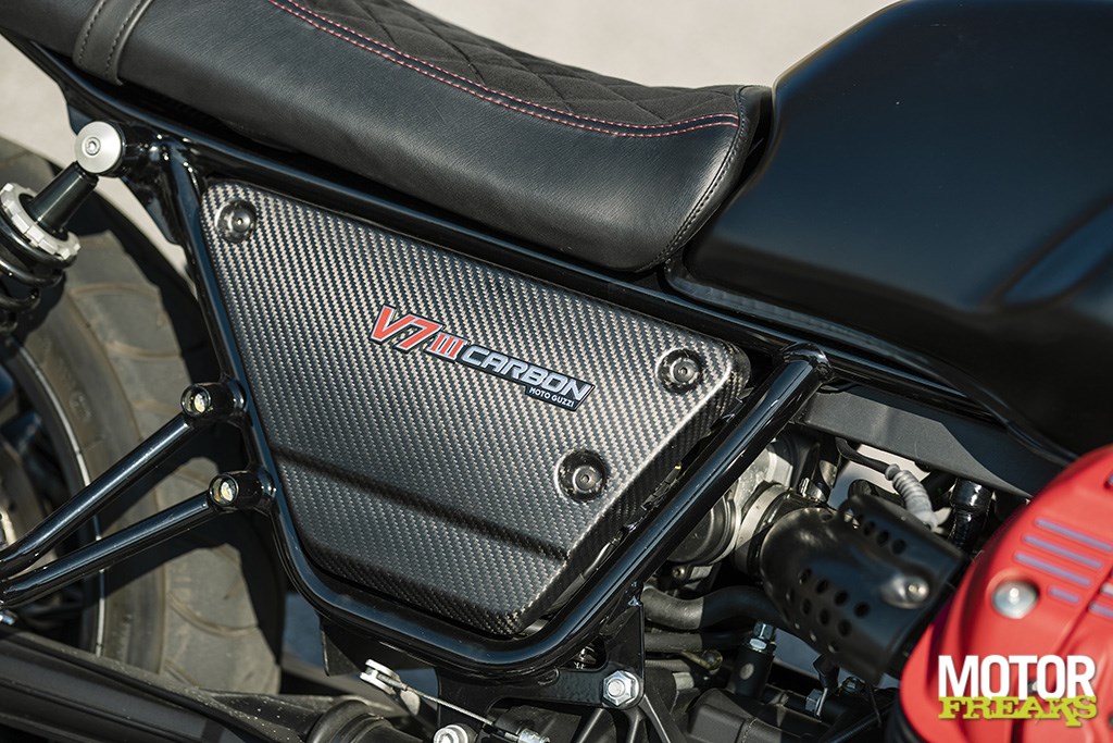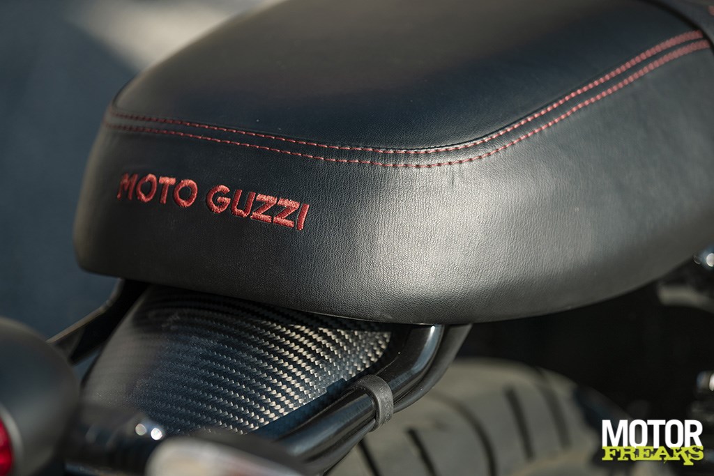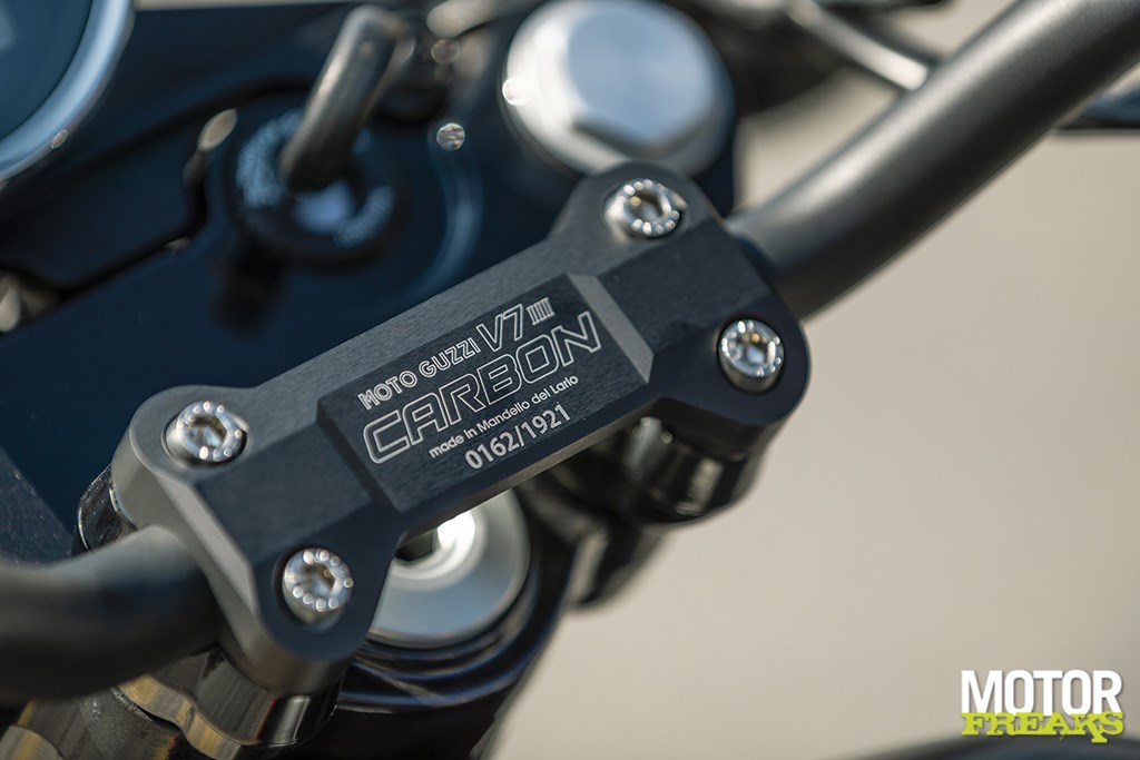 Geen overdaad aan carbon, maar precies goed. 1921 stuks, omdat in dat jaar Moto Guzzi is opgericht
