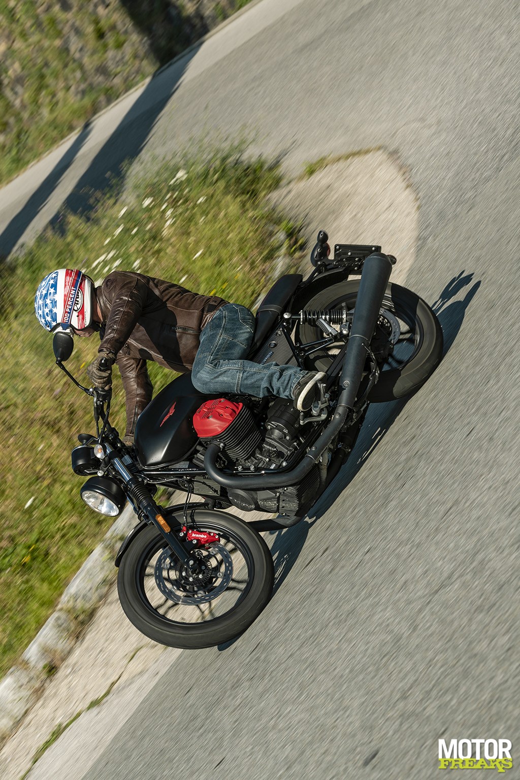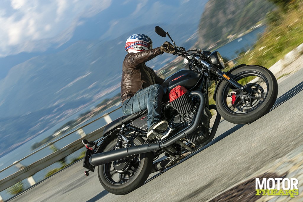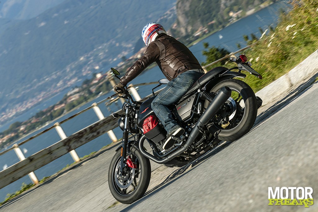 Die schraapgeluiden, dat wordt na verloop van tijd wel minder hoor. Kwestie van grondspeling verbeterengemak de prachtige bergwegen langs het Comomeer omhoog te kunnen jagen. Want vergis je niet, onthaasten mag dan wel het steekwoord van de V7 III zijn, maar dat wil niet zeggen dat ‘ie bochtenschuw is. Met dank ook aan het rijklaargewicht dat met volle 21-liter tank slechts 209 kilo is.