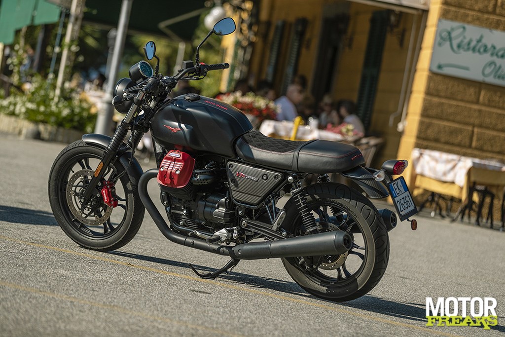 Rijden met de V7 III is dan ook een ervaring op zich, dat zich nog het best laat omschrijven als op een relaxte manier lekker sportief rijden met je haren vol in de wind. Motorrijden zoals motorrijden ooit begon: aantrappen en op naar de horizon, maar zien waar het schip strand. Dat deze gelimiteerde Carbon uitvoering er watertandend lekker uitziet en daarmee hoge ogen scoort op de schaal van coolheid is de kers op de taart, omdat je daarmee nooit om aandacht verlegen bent. En niemand boos reageert wanneer je voor die ene mooie foto met een vol terras op de achtergrond de route voor het autoverkeer dat op zoek is naar een parkeerplaats volledig blokkeert. Doe maar rustig aan, wij wachten wel.