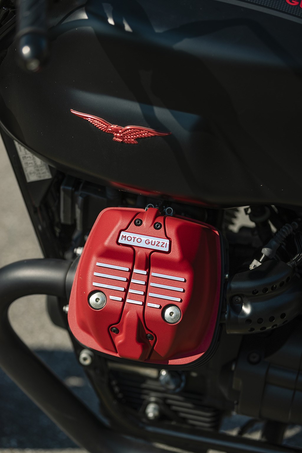 Zoek karakter op in de motorencyclopedie en dikke kans dat je naar pagina V7 wordt doorverwezen. Breng het blok tot leven en de motor trilt onder je als een bouwvakker die met een drilboor aan het werken is, geef vervolgens gas en je wordt op en neer geschud als de ferry van Calais naar Dover bij windkracht 10. Beetje gechargeerd, dat wel, maar in essentie klopt het wel. Een V7 start je niet, maar breng je tot leven. Alleen al de manier waarop de V7 stationair loopt: beetje onregelmatig en dat is niet omdat 'ie niet goed is afgesteld, maar het teken dat 'ie wél goed is afgesteld. Wij Nederlanders zouden dat meteen willen verbeteren, maar in goed Italiaans heet dat gewoon karakter.