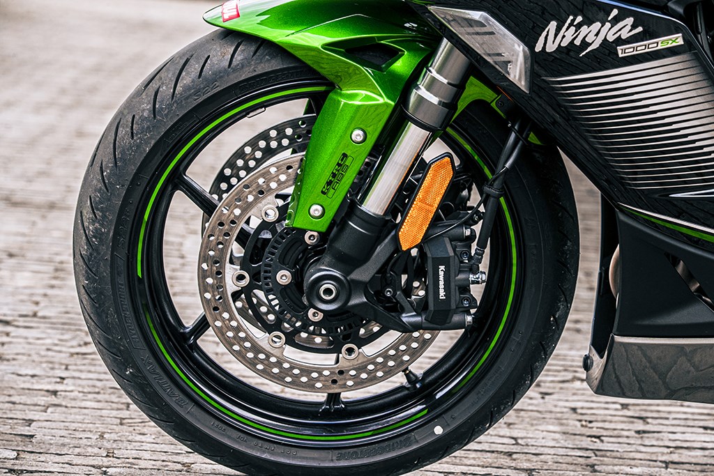 Beide motoren zijn af fabriek voorzien van een speciaal voor de motor ontwikkelde band, Kawasaki is hiervoor met Bridgestone in zee gegaan, waar Suzuki een beroep op de Japanse tak van Dunlop heeft gedaan. De speciale Bridgestone S22 liet op straat onder alle omstandigheden een zeer goede indruk achter, met zeer scherp en direct stuurgedrag en fijne feedback, wat niet van de Dunlop kon worden gezegd. De Sportmax Roadsmart 2 banden stuurde duidelijk een stukje trager en gaf een stuk minder “feel” en feedback, terwijl kijkend naar de geometrie