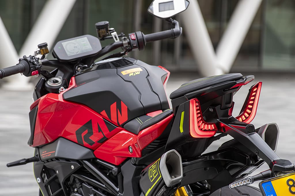 De bandenkeuze onderstreept nog eens dat er niet op de verkeerde plek is bezuinigd. De SRK 921 staat af fabriek op Pirelli Diablo Rosso IV banden, waar bij veel merken de keuze vaak toch een centenkwestie is en eerder voor de goedkoopste dan de beste optie wordt gegaan. Keerzijde is wel dat de Diablo Rosso IV niet de meest gebruiksvriendelijke band is: bij zomerse temperaturen en droog asfalt voelen ze fantastisch aan, maar zakt het kwik richting de 10 graden of lager en komt er regen bij kijken, dan worden ze merkbaar nukkiger.