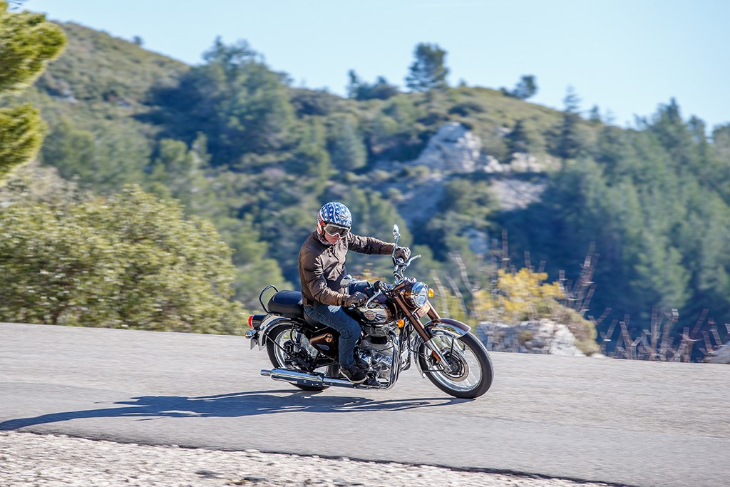 Als aan het eind van de heerlijke rit dwars door het prachtige berglandschap van de Franse Rhône ik van de Classic 350 afstap kan ik niet anders dan tot de conclusie komen dat Royal Enfield z’n huiswerk verdomd goed heeft gedaan. Wat stuureigenschappen betreft voelt de Classic als een moderne fiets aan, terwijl het karakter van het blok naadloos bij het karakter van een Classic aansluit. Ten opzichte van de twee jaar uit productie genomen Classic 500 is deze 350 op alle fronten een enorme stap vooruit, zonder dat dit ten koste van de aaibaarheidsfactor is gegaan.
