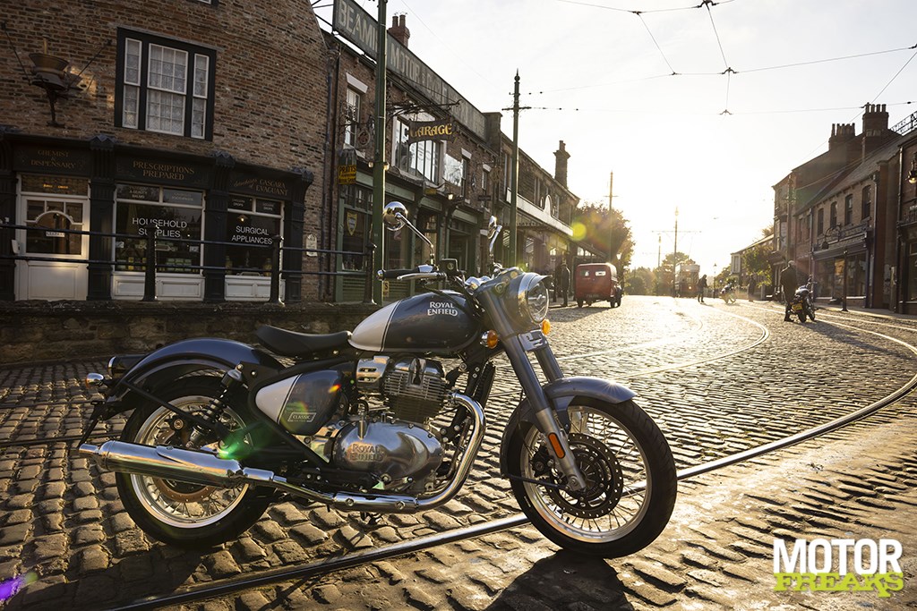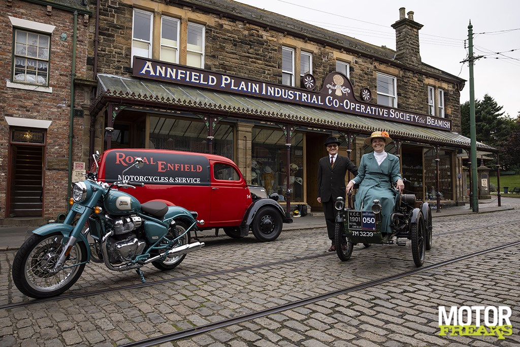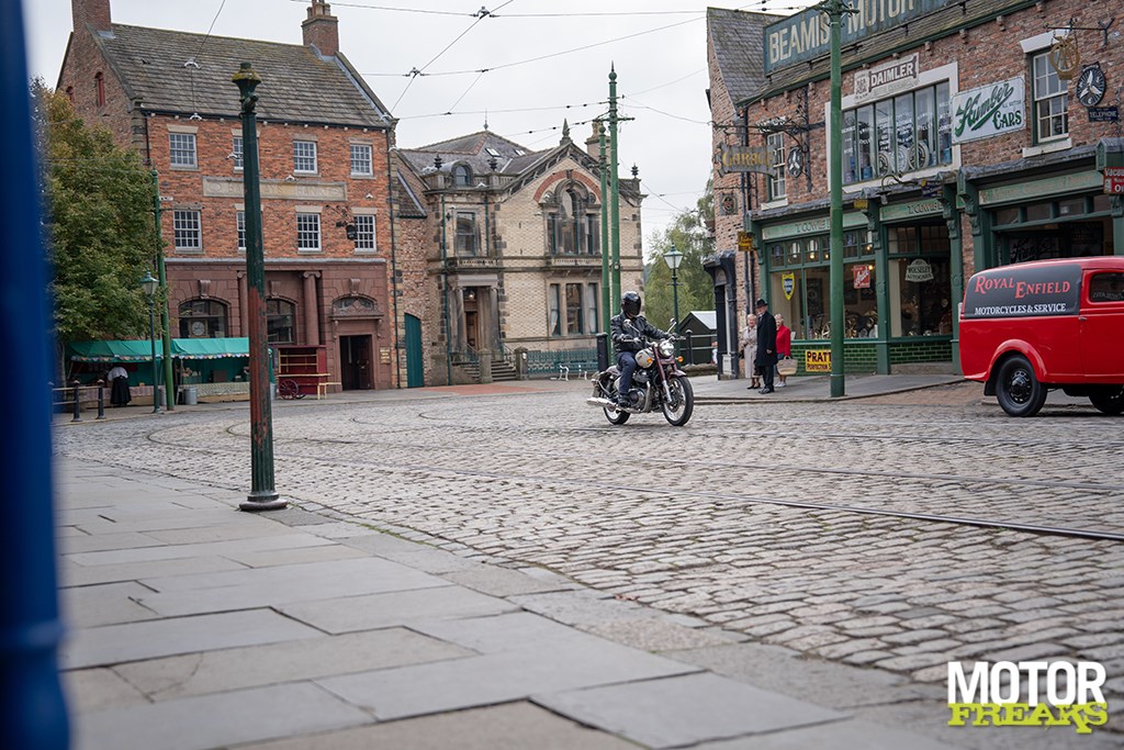 De kans om de 650 Classic te testen deed zich eind september voor op wat ooit Enfields thuisbasis was in Engeland, zij het 200 mijl noordelijker van de historische Redditch fabriek in de Midlands. Daar bood het Beamish Living Museum www.beamish.org.uk een authentieke, levende achtergrond voor alle vervlogen tijden van Royal Enfield door als thuisbasis te fungeren voor een rit van 240 km over de