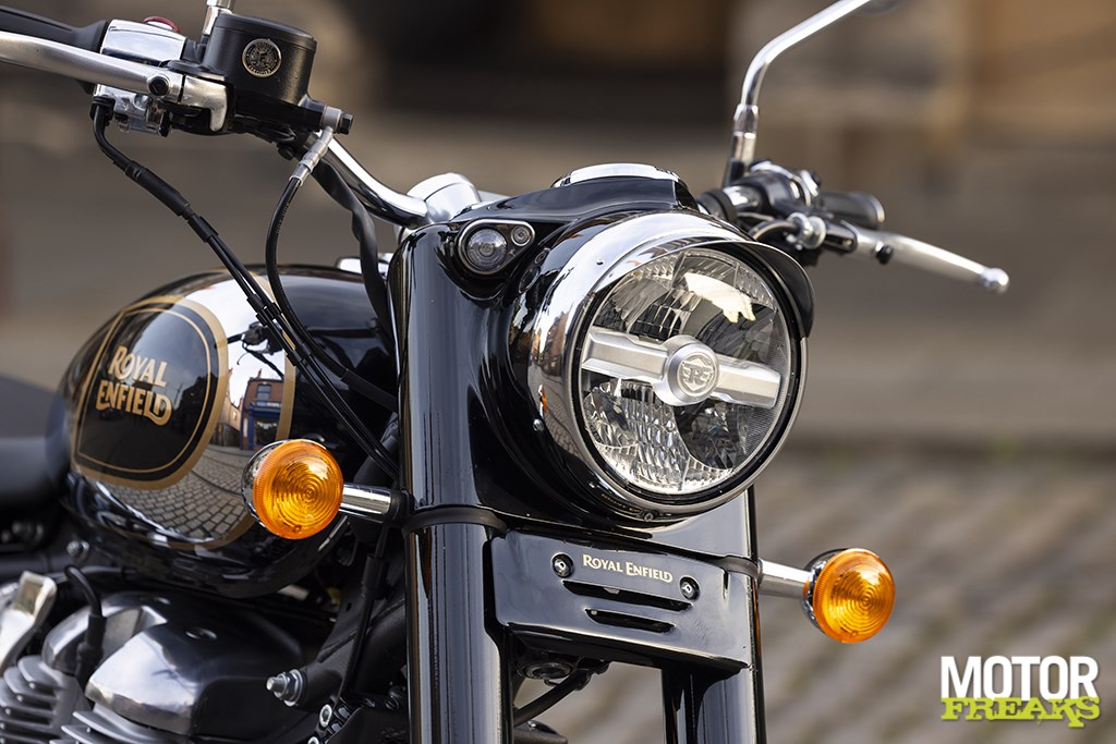 Zowel een zijstandaard, die heel gemakkelijk uit te klappen is terwijl je op de motorfiets zit, als een al even gemakkelijk bereikbare middenbok zijn standaard gemonteerd. De verchroomde armaturen op het stuur zien er strak en stijlvol uit, ondanks dat ze een beetje kaal lijken door de afwezigheid van andere elektronica dan EFI en ABS op een motor met een gaskabel. De LED-koplamp wordt omhuld door de kenmerkende Enfield aluminium gondel, terwijl ook het achterlicht van LED-verlichting is voorzien. De kwaliteit is uitstekend, met vanzelfsprekend aandacht voor detail.