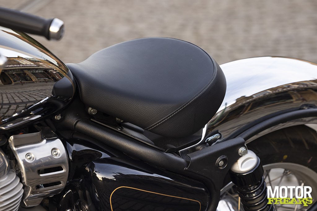Het zadel van de Classic 650 bleek behoorlijk comfortabel te zijn, met nul verdoofde-kont-syndroom na mijn dag van 150 mijl. Dat komt omdat de balansas van de motor zijn geld echt waard is, met nul trillingen via het stuur of de voetsteunen en slechts een lichte resttinteling via het zadel, wat eigenlijk heel prettig is! Dat is nadat je de knop hebt ingedrukt en de motor onmiddellijk tot leven komt, bij gebrek aan een toerenteller - waarom? – naar schatting ongeveer 1.200 tpm stationair,