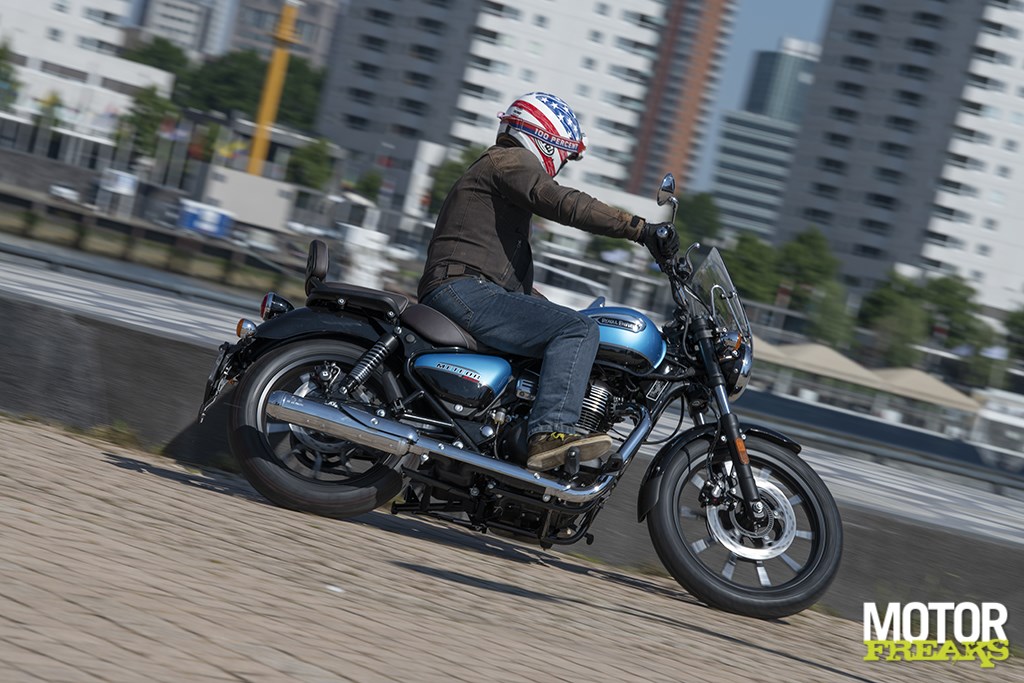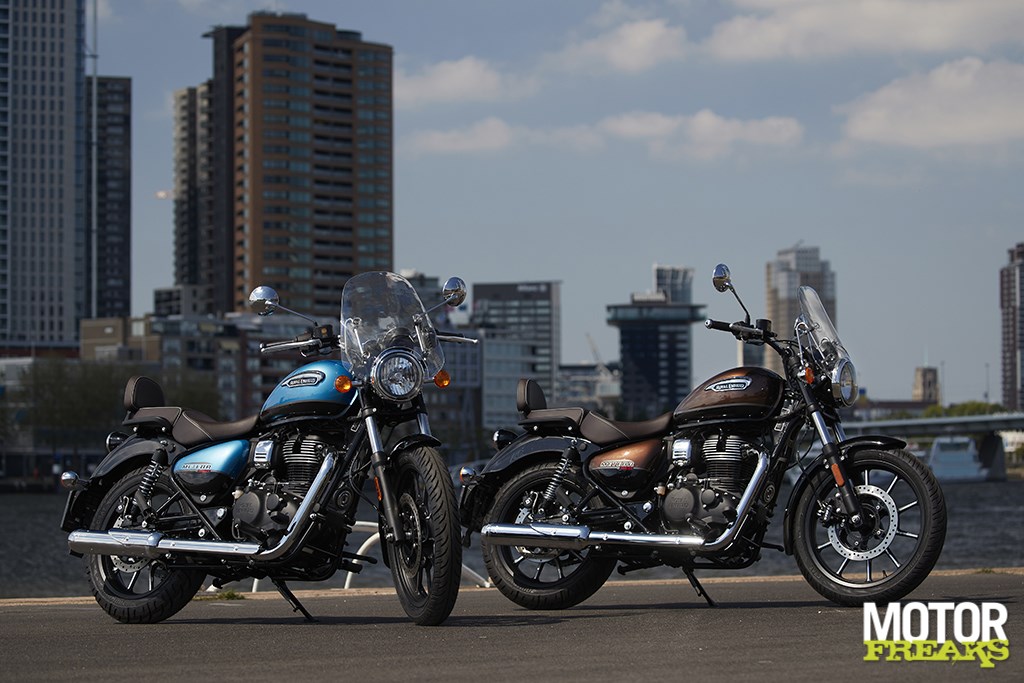 "Ja, rijd effe voor die cruise langs. Je weet wel, voor de beeldspraak. Omdat 't een cruiser is"De Meteor 350 volgt naar 20 jaar de Thunderbird op, die in exportmarkten onder de naam Rumbler op de markt is gezet, maar is veel meer dan gewoon een opvolger van die cruiser-type motorfiets.