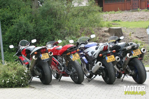 Van de vier motoren die wij met elkaar vergeleken, is alleen de Suzuki een nieuw model. De andere drie gaan al enkele jaren mee, hoewel we daar wel een kanttekening bij moeten plaatsen. Wij wilden voor deze test uiteraard het 2005 model van de Ducati 999 inzetten, maar bij Ducati North Europe was slechts één 999 voorhanden en die was uitgerekend in de periode dat wij wilden testen niet beschikbaar. Of we genoegen wilden nemen met een 2004 model, maar dan weer wel voorzien van Öhlins voorvork. De Aprilia RSV1000 Factory en de Honda VTR1000 SP-2 mogen beide dan wel 2005 modellen zijn, maar zijn allebei al langer op de markt.
