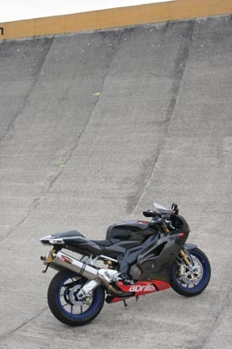 De Aprilia RSV1000 Factory is het op een na oudste model van deze vergelijkingstest. Kan je het je voorstellen? De motor -die in 2003 het levenslicht zag- werd voor 2005 slechts minimaal onder handen genomen. Technisch bezien bleef de motor ongewijzigd, de enige verschillen die we konden bespeuren waren dan ook van optische aard. Zo prijkt nu pontificaal een leeuwenkop op de kuip en hebben de knippers in het kontje een wit glaasje gekregen. Met de Factory heeft Aprilia een circuitmotor puur sang neergezet, iets wat alleen al aan de bandenkeuze (Pirelli Supercorsa"s) af te lezen is. De verschillen ten opzichte van de RSV1000R zijn dan ook enorm.