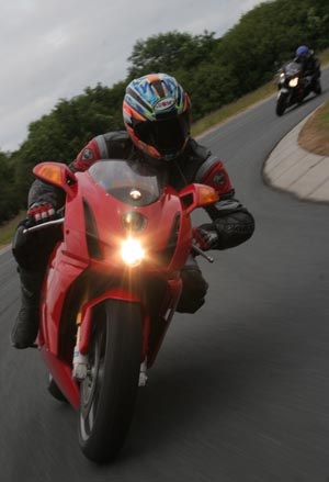 Ondanks dat het 998cc tellende Testastretta motorblok identiek is aan het blok dat de 998 aandrijft, zijn er duidelijk verschillen te merken. Om te beginnen de souplesse van het motorblok en vermogen onderin, de motor laat zich zonder problemen afknijpen tot tweeduizend toeren en geeft daarmee - behalve de Suzuki - de rest (en ook zijn voorganger) het nakijken. Daarnaast voelt de motor (zeker in 5e en 6e versnelling) bovenin sterker dan bij de 998, zoveel dat ik zelfs ging twijfelen over de eindoverbrenging en versnellingsbakverhoudingen van beide motoren die bij navraag toch identiek bleken te zijn. Het enige verschil tussen beide modellen is het uitlaatsysteem, maar of dat zoveel verschil zal brengen?