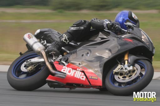 Bij Aprilia had men echter geen tijd meer gehad om de motor optimaal op de uitlaten af te stellen, en dat konden we horen. Gas dicht had bijna continu vette klappen (naverbranding) in de uitlaat tot gevolg. Nu hoor je ons hier normaal gesproken niet snel over klagen (en Vincent eigenlijk nog steeds niet), maar in dit geval was het net een beetje té. Denk ook niet dat je buren dit zullen waarderen, dus zaak om de Aprilia wel netjes af te laten stellen, mocht je open pijpen willen monteren. Met de op de 999 gemonteerde Termignoni was het wat dat aangaat beter leven. De 999 heeft een mooie donkere brom, die pas gaat brullen als je de motor de sporen gaat geven. Rij rustig met de Duc en je hebt geeneens het idee met een open uitlaat te rijden. Maar geef gas en je wordt verwend met een sound alsof je op Toseland"s fabrieksracer aan het rijden bent. Bij de Aprilia was het trouwens net het omgekeerde, onderin vette klappen en bovenin "redelijk beschaafd". Ter illustratie: bij lage snelheid (zoals bijvoorbeeld binnen de bebouwde kom) was het de Aprilia die - vanaf de andere motoren - duidelijk hoorbaar was, terwijl bij acceleratiemetingen op de snelweg juist de Ducati boven alles en iedereen uit klonk.