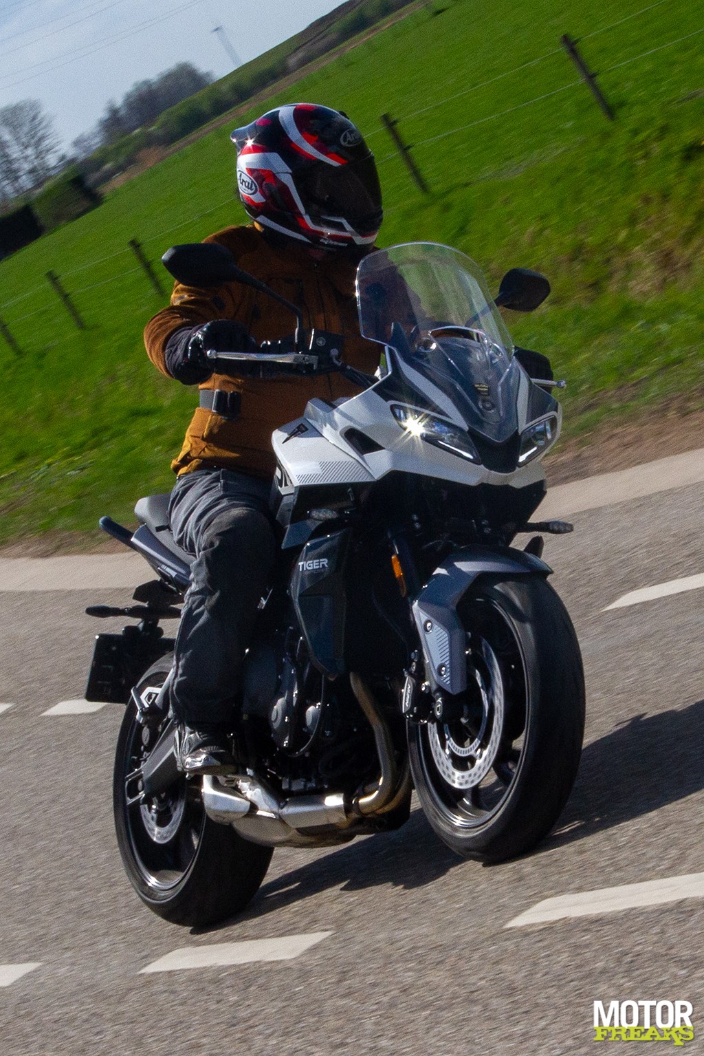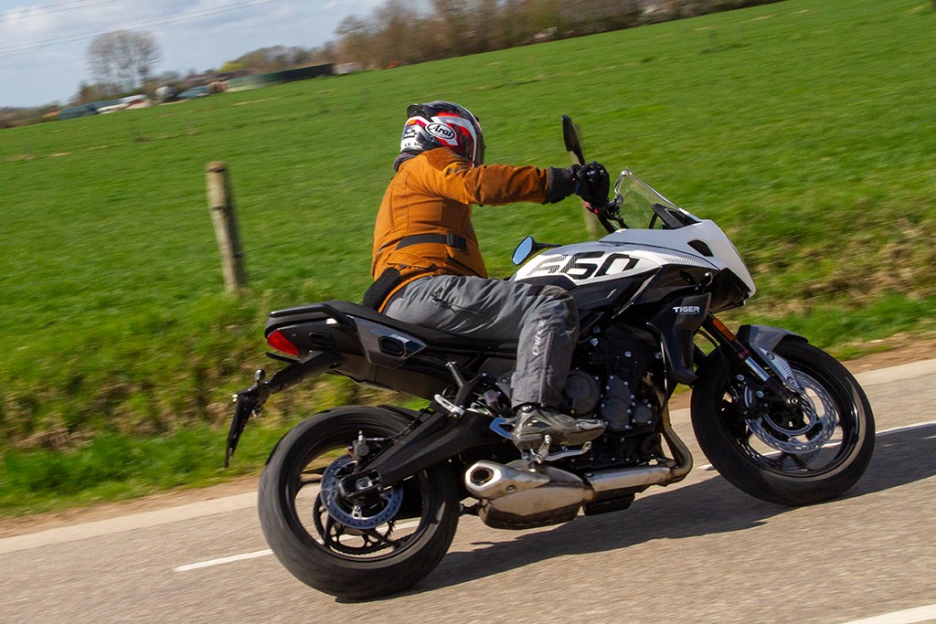 Om te beginnen is de Tiger Sport 660 namelijk werkelijk een superlekkere fiets om op een zonnige zaterdag heerlijk mee uit te waaien, even alles van je af te zetten en lekker sportief een blokje om te gaan, ook als het qua temperatuur nog best fris is dankzij de goede windbescherming van het in hoogte instelbare ruitje.
