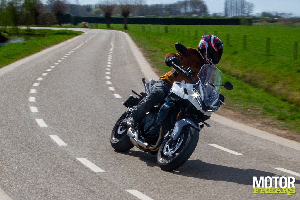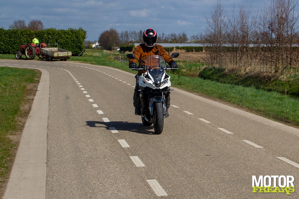 Eenmaal de wielen aan het rollen heb je daar trouwens sowieso geen last meer van, en omdat de 660 echt superlekker stuurt heb ik ook totaal geen behoefte om dat nog eens te checken. In alle eerlijkheid: nog maar amper onderweg was ik het alweer helemaal vergeten en dacht er pas weer aan nadat ik de motor aan het eind van de dag alweer had teruggebracht en op de 800 weer onderweg was naar huis. Met speels gemak is de 660 van richting te veranderen en voelt in dat opzicht veel lichtvoetiger aan dan de 800, wat enerzijds door een verschil in veervoorspanning (en daarmee dus rijhoogte) en anderzijds door een verschil in enertia in het blok kan worden veroorzaakt.