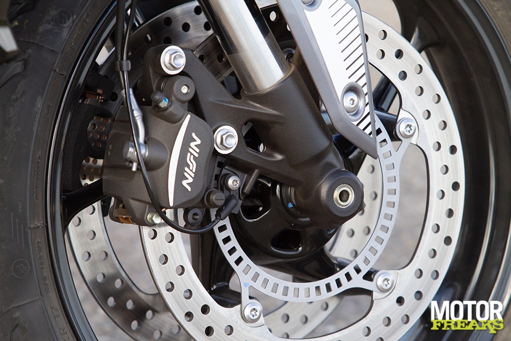 | Voorrem | Dubbele schijf 310 mm, Nissin 2-zuiger remklauw, bochten-ABS |