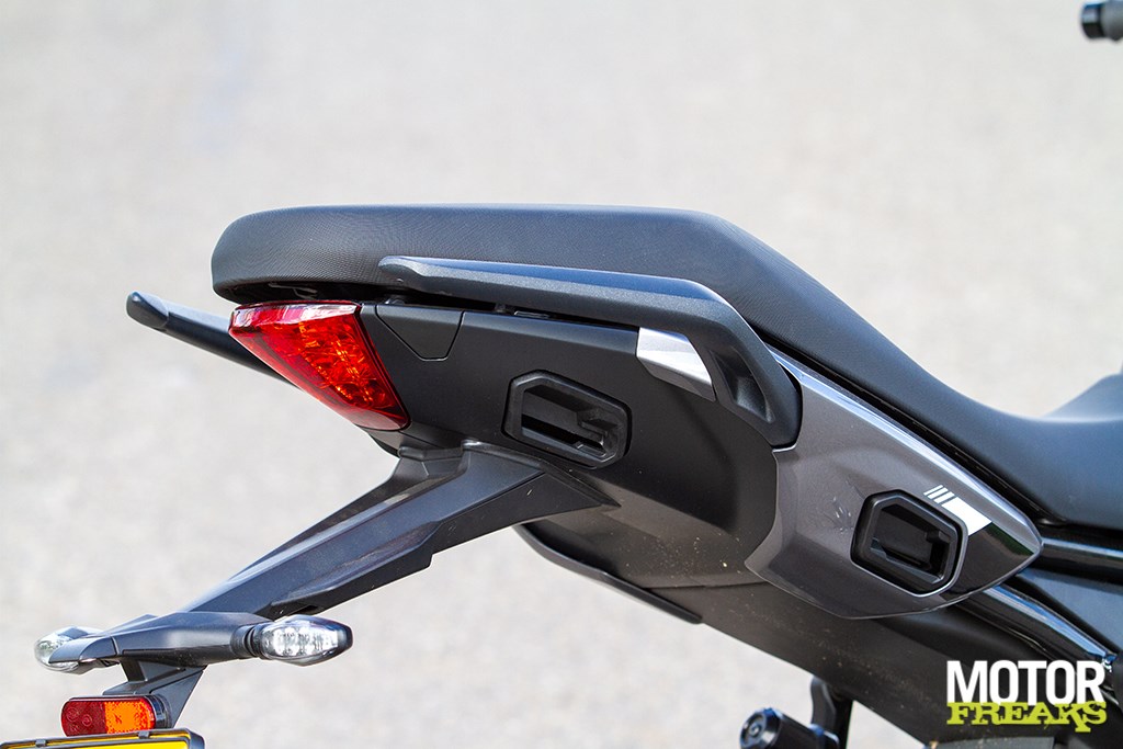 Goede handgrepen voor de duo, ophangpunten voor zijkoffers mooi in het kontje verwerkt. Met de 17,2 liter tank kom je volgens onze meting (verbruik 1 op 19,4) 333 kilometer ver