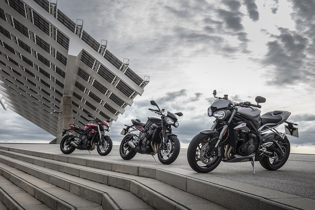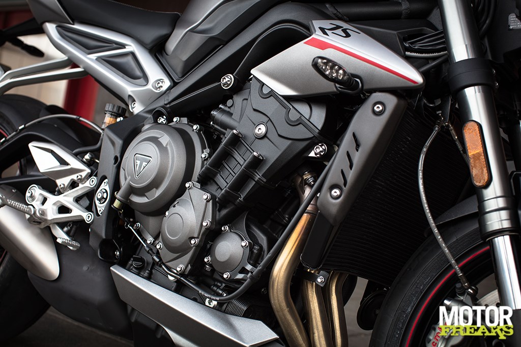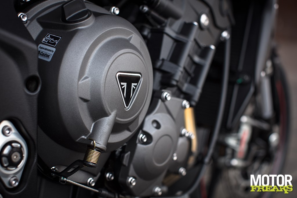 Volgens Triumph is bij de ontwikkeling van het nieuwe motorblok veel aandacht aan het in- en uitlaattraject besteed – de uitlaat en de luchtfilterkast zijn compleet herzien – om enerzijds de ademhaling te verbeteren en anderzijds tegelijkertijd een stukje sound engineering te doen, hoewel van een echte geluidssensatie geen sprake is. Daarnaast is ook de versnellingsbak compleet herzien, de eerste twee versnellingen zijn ingekort en bovendien zijn de R en RS nu van een slipper assist koppeling voorzien. De RS is als enige standaard ook nog eens met een quickshifter uitgerust, jammer is wel dat deze geen autoblipper functie voor het terugschakelen heeft. Alle drie de uitvoeringen zijn met ride-by-wire gasklepbediening, instelbare rijmodi en eveneens instelbare tractiecontrole uitgerust, maar ook hier