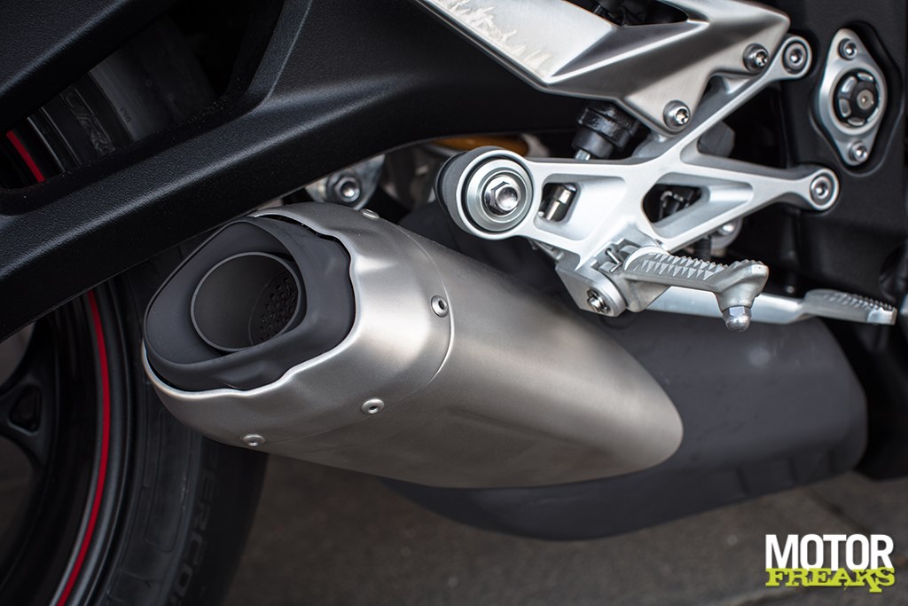 De eindkap is bij de R en RS sportiever dan bij de S. De quickshifter zit standaard op de RS, maar is als accessoire leverbaar voor de S en R