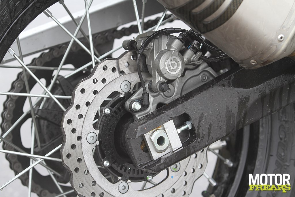 Uiteraard ook Brembo langs achteren. Kettingbeschermer is accessoire