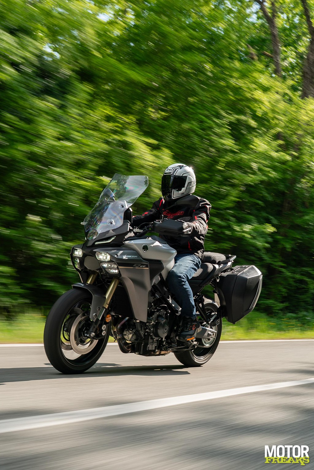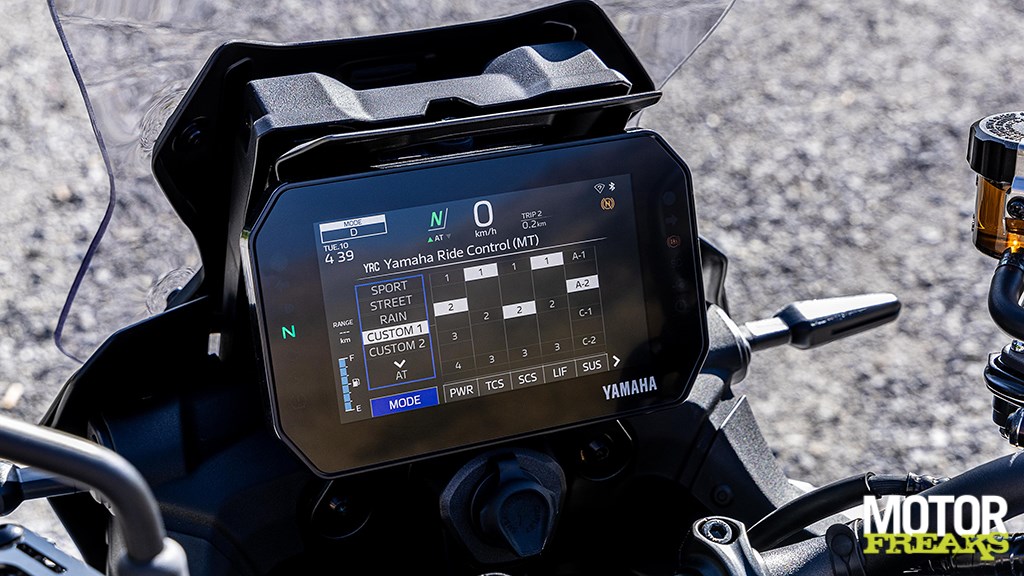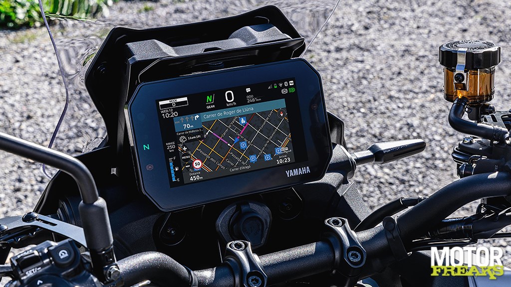 Ondanks de toegenomen dynamiek hebben de Yamaha-ontwikkelaars veel aandacht besteed aan toeren met een aanzienlijk groter aanbod aan standaarduitrusting. Dit begint met de volledige kaartnavigatie op de TFT met behulp van de MyRide en gratis Garmin StreetCross app - ook al werkte deze niet perfect op alle motoren tijdens de testrit. Het grote windscherm kan via het instrument elektrisch 100 millimeter in hoogte worden versteld voor een bijna perfecte bescherming tegen weer en wind, en standaard zijn verwarmde handvatten voorzien. Erg praktisch is de centrale vergrendeling van de tankdop en de 30-liter zijkoffers, die zonder sleutel kunnen worden geopend en verwijderd, van binnen verlicht zijn en zelfs een USB-oplaadaansluiting hebben. Deze is ook te vinden in een klein vakje op het rechter sierpaneel, waar een mobiele telefoon kan worden opgeborgen en van stroom kan worden voorzien. De bedieningselementen op het stuur zijn verlicht om ervoor te zorgen dat dit volledige scala aan functies ook 's nachts en in tunnels beschikbaar blijft - de Tracer update lijkt goed doordacht te zijn.