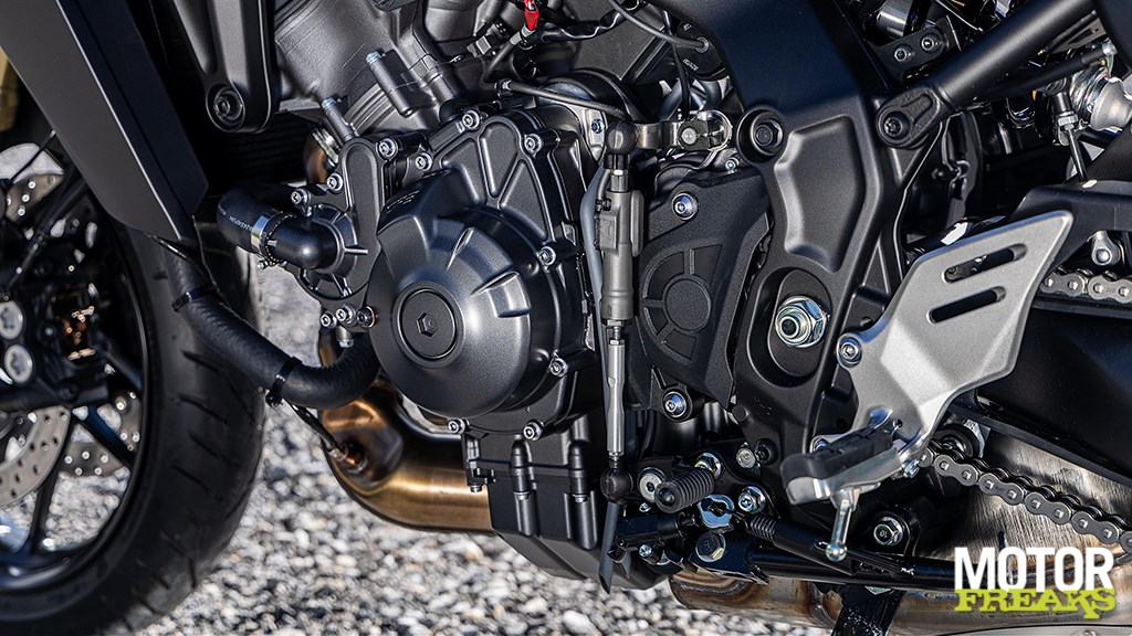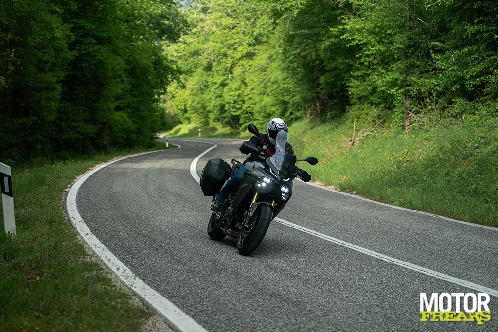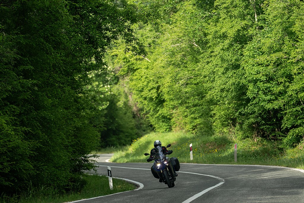 Lange etappes zijn daarom net zo goed mogelijk zonder vermoeidheid als het dynamische bochtenwerk, waarvoor de CP3 driecilinder lijnmotor de perfecte basis vormt. In de huidige Euro5+ configuratie haalt de driecilinder, die via een centrale knop zonder contactsleutel wordt geactiveerd, maximaal 119 pk uit zijn 890 kubieke centimeter cilinderinhoud. Nog belangrijker voor de bruikbaarheid is echter