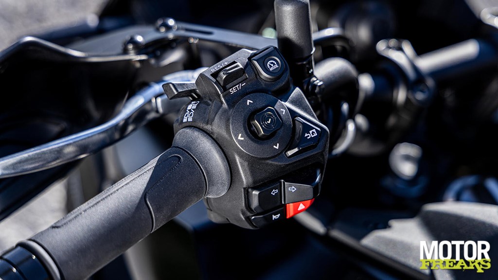 Stuurt echt helemaal niet verkeerd, maar het blijft wel een lelijk gedrocht die het toepast in de motorsector. Met behulp van informatie van de 6-assige IMU schakelt de computer de LED's in de onderste rij voor de adaptieve bochtverlichtingsfunctie in vanaf een hellingshoek van zeven graden, een echte veiligheidsvoorsprong in het donker.