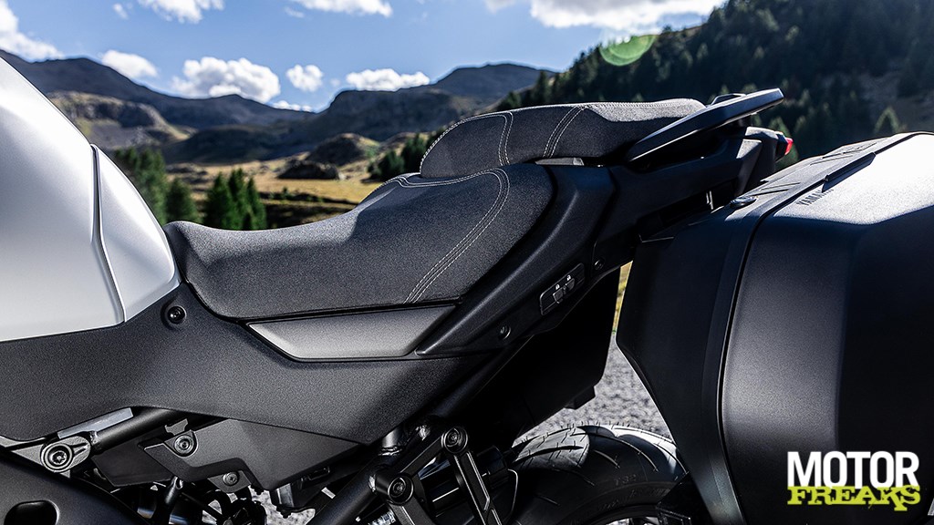Bij nader inzien biedt de nieuwe Tracer 9 GT echter een aantal andere verbeteringen die duidelijk worden zodra je gaat zitten: Hoewel de officiële zithoogte met 20 millimeter is toegenomen tot 845 millimeter, verlaagt de smallere en vlakkere contour van de vulling de afmeting van de kruisboog, zodat Tracer-rijders met kortere benen ook gemakkelijk de voeten aan de grond kunnen krijgen. Samen met het lagere stuur is de zit iets ruimer en nog steeds rechtop, maar de bewegingsvrijheid zelf is nauwelijks toegenomen. Net als voorheen bepaalt de stevige vulling met goede lendensteun van het zitje van de duopassagier de positie van de rijder.