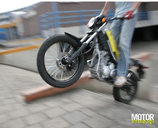 ..Waar te beginnen met de Yamaha Tricker? over de 5 versnellingen die hij heeft? Of de zuinigheid van de motorfiets? Of de fijne buddyseat waar je op kan zitten? Oja...en niet te vergeten...de bagage mogelijkheden... Nee, nee, néé . Kappuh... stoppuh, nokkuh met die praktische zaken... deze motorfiets gaat helemaal niet over "praktisch". Wil je praktisch en kijk je naar deze motor als alternatief? Wat doe je hier nog? Deze fiets heeft een heel duidelijke boodschap, en die gaat voor de verandering niet over praktische inzetbaarheid. Zoals Jeremy Clarkson (bekend van Top Gear) zou zeggen, is deze motor "Absolutely BRUTAL". Blinkt hij uit in vermogen of windbescherming? Neeuhhh... in PURE FUN!!!, in één woord GEWELDIG!!!!