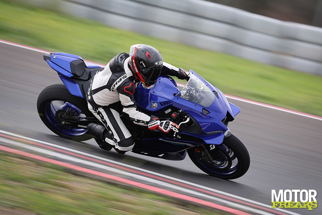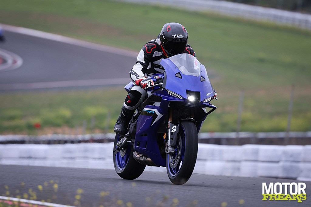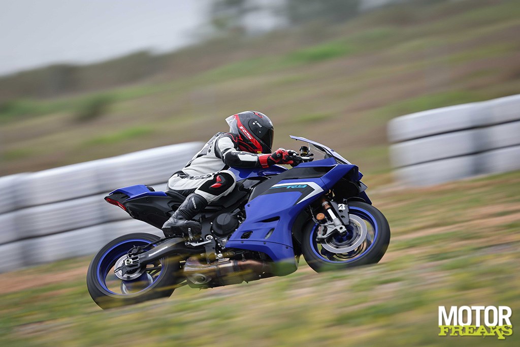 Zo vertrouwd en vergevingsgezind als de motor is, zo lichtvoetig en tegemoetkomend is het rijwielgedeelte met volledig instelbare KYB-componenten. De 43 mm upside down voorvork en achtershock zijn in de fabrieksafstelling goed opgewassen tegen de verrassend hobbelige ondergrond en absorberen veel, zonder dat het ten koste van de feedback is gegaan. De R9 maakt een uiterst behendige, gewillige indruk op elk deel van het circuit en kan ook moeiteloos door de twee lastige chicanes net voor het rechte stuk worden gemanoeuvreerd. Aan het eind van het rechte