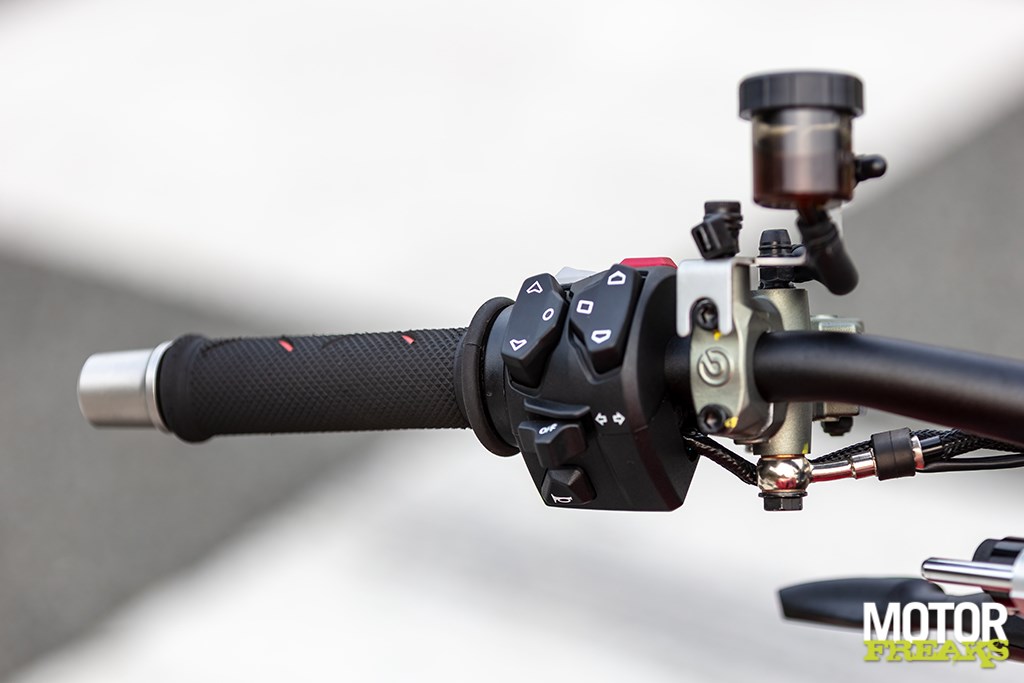 Ook de Brembo remmelarij is van de laatste generatie: Hypure heet dat. Voorzien van elektronisch geregeld c-ABS
