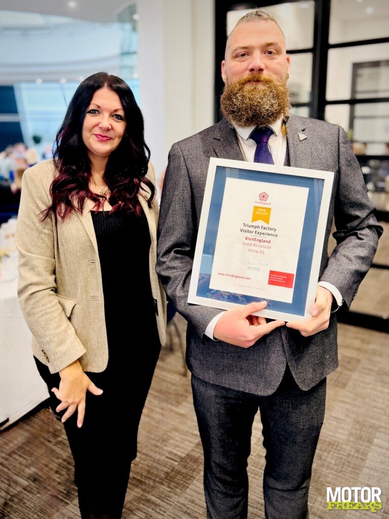 De nationale prijzen, uitgereikt op 12 november in het National Motor Museum in Warwickshire, erkennen uitmuntendheid binnen de bezoekerssector. De awards werden toegekend op basis van de scores die attracties haalden tijdens hun jaarlijkse VisitEngland Visitor Attraction Quality Scheme-beoordeling. Een VisitEngland-assessor omschreef de Triumph Factory Visitor Experience als: “De perfecte dag uit voor fans van iconische motorfietsen.”