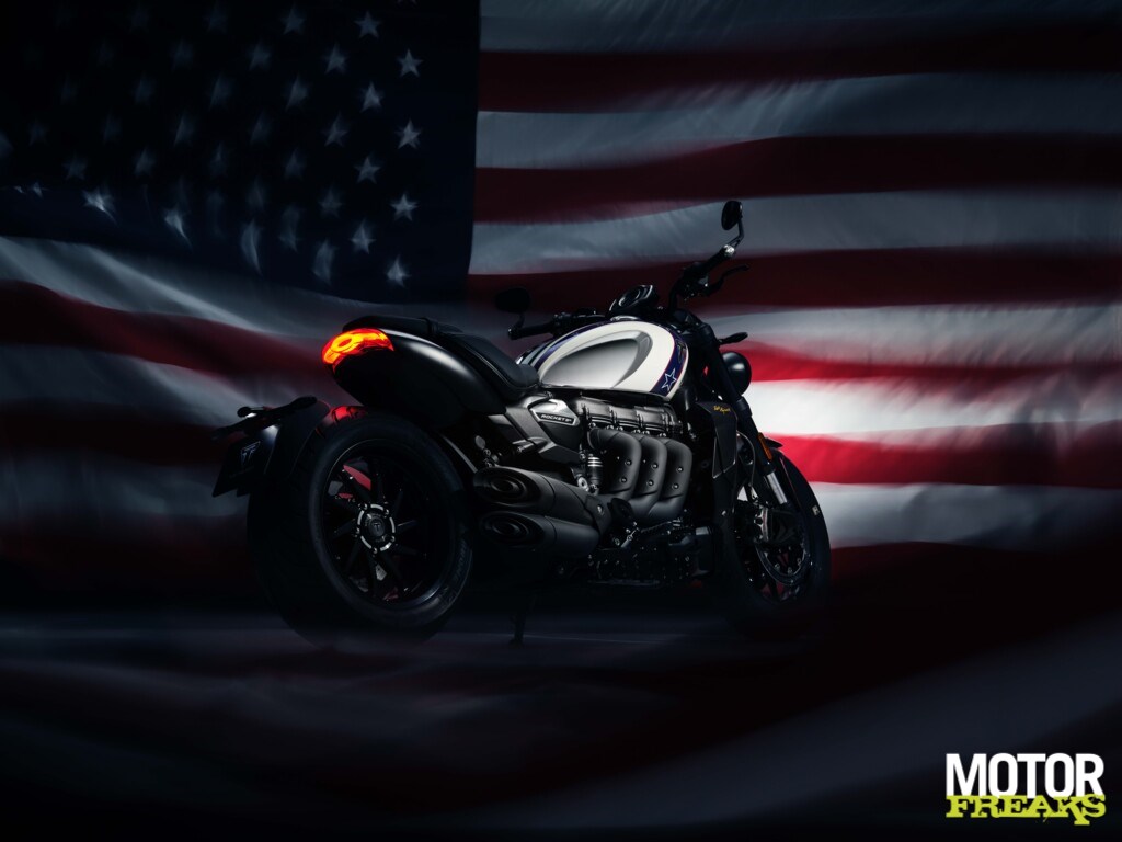 De iconische rood-wit-blauwe kleurstelling, waarin de Amerikaanse sterren en strepen zijn verwerkt, siert de schitterende, verchroomde brandstoftank en loopt door naar het voorspatbord, waar het is verwerkt in een nieuwe EK-graphic, terwijl elegante gouden handtekeninggraphics de radiatorbehuizingen verfraaien.