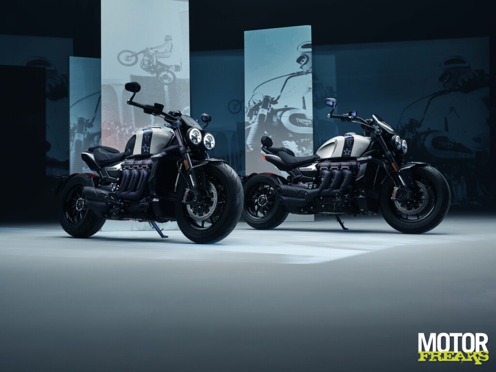 De nieuwe Rocket 3 R en GT Evel Knievel Limited Editions, die in een oplage van slechts 500 units worden geproduceerd, eren de jarenlange relatie tussen Triumph en Knievel, van zijn eerste televisieoptreden op een Bonneville T120 tot zijn baanbrekende sprong over de fonteinen van het Caesars Palace.