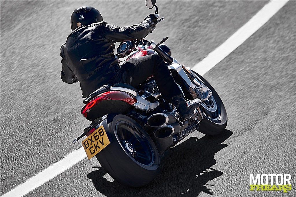 Gaat anders nog best de hoek om, voor zo'n mastodontzithouding op de motorfiets. Het Rocket 3 R-model is voorzien van een stuur in roadster-stijl, terwijl het Rocket 3 GT-model een op touring gericht stuur heeft dat het comfort en de mogelijkheden voor touring verbetert.