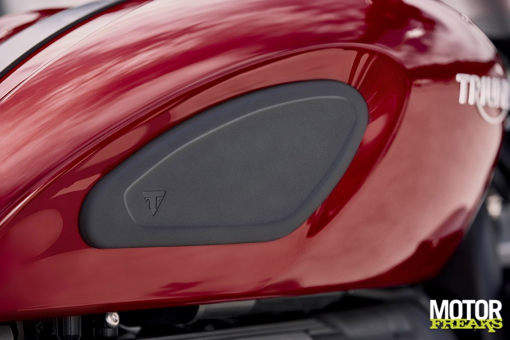 Om dat te realiseren zijn ze in Hinckley meer dan grondig te werk gegaan. Triumph spreekt van een nieuwe carterassemblage, een nieuw smeersysteem met dry sump en een integrale olietank en nieuwe balansassen, die samen een gewichtsbesparing van 18 kilo hebben opgeleverd. Uiteraard is ook aan het in- en uitlaattraject gewerkt, met in het oog springend het vette hydrogevormde uitlaatsysteem dat volgens Triumph ontworpen is voor een perfecte uitlaatrouting, die van de kop via de gecombineerde katalysator naar de drievoudige einddemper stroomt en een unieke, diep grommende driecilinder sound moet opleveren.