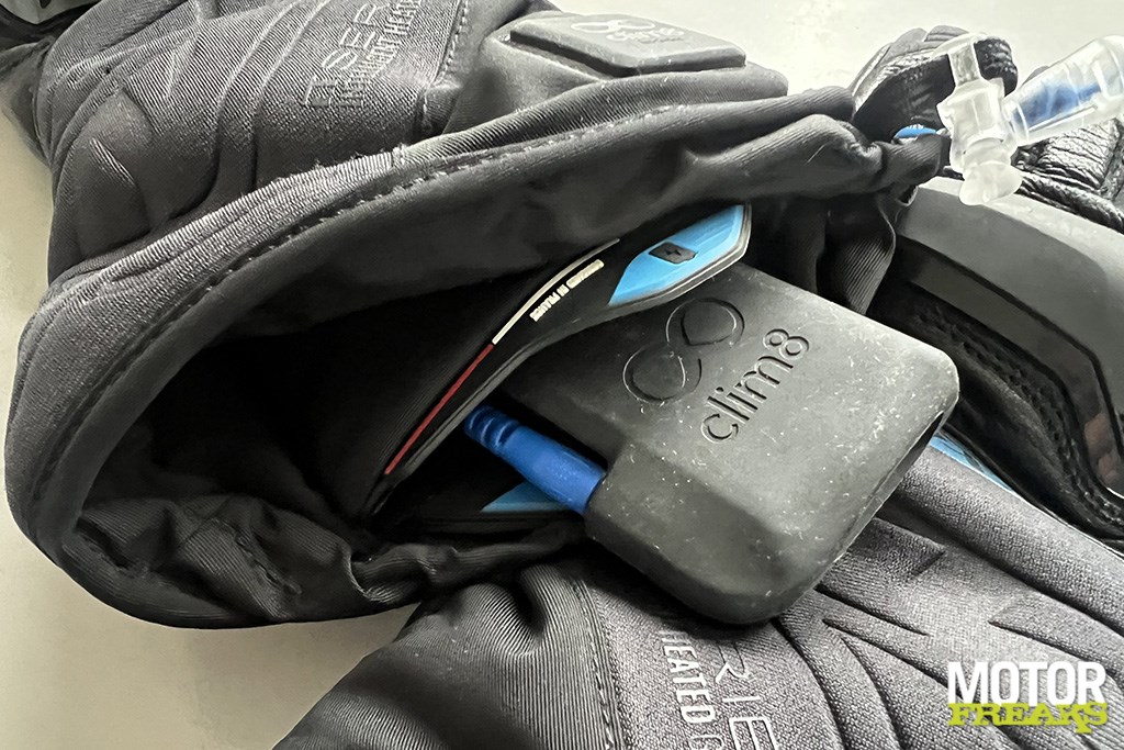Wat de handschoen echt uniek maakt is de warmtehuishouding, die in samenwerking met Clim8 is ontwikkeld en bestaat uit sensoren in de handschoen die via Bluetooth de temperatuur monitoren, die in de Clim8 app kan worden geregeld. De handschoenen in de app connecten, temperatuur instellen en klaar is Kees. Klinkt als kinderlijk eenvoudig en dat is het ook.