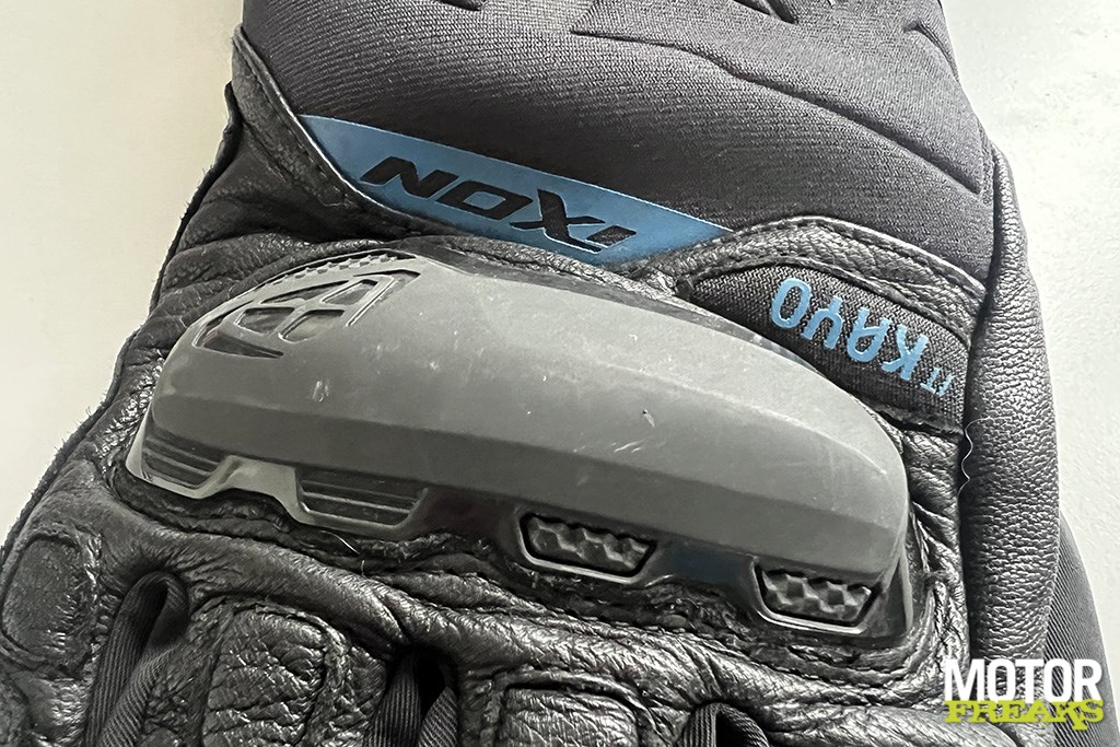Protector op de knokkels en slider in de handpalm. Qua protectie zit 't wel snor