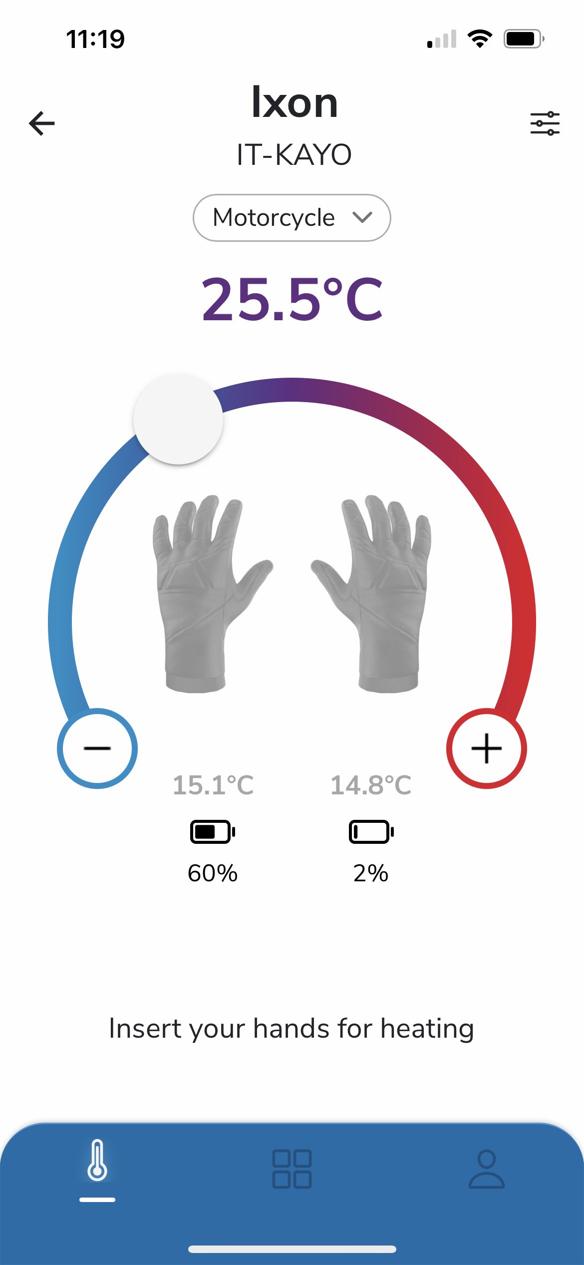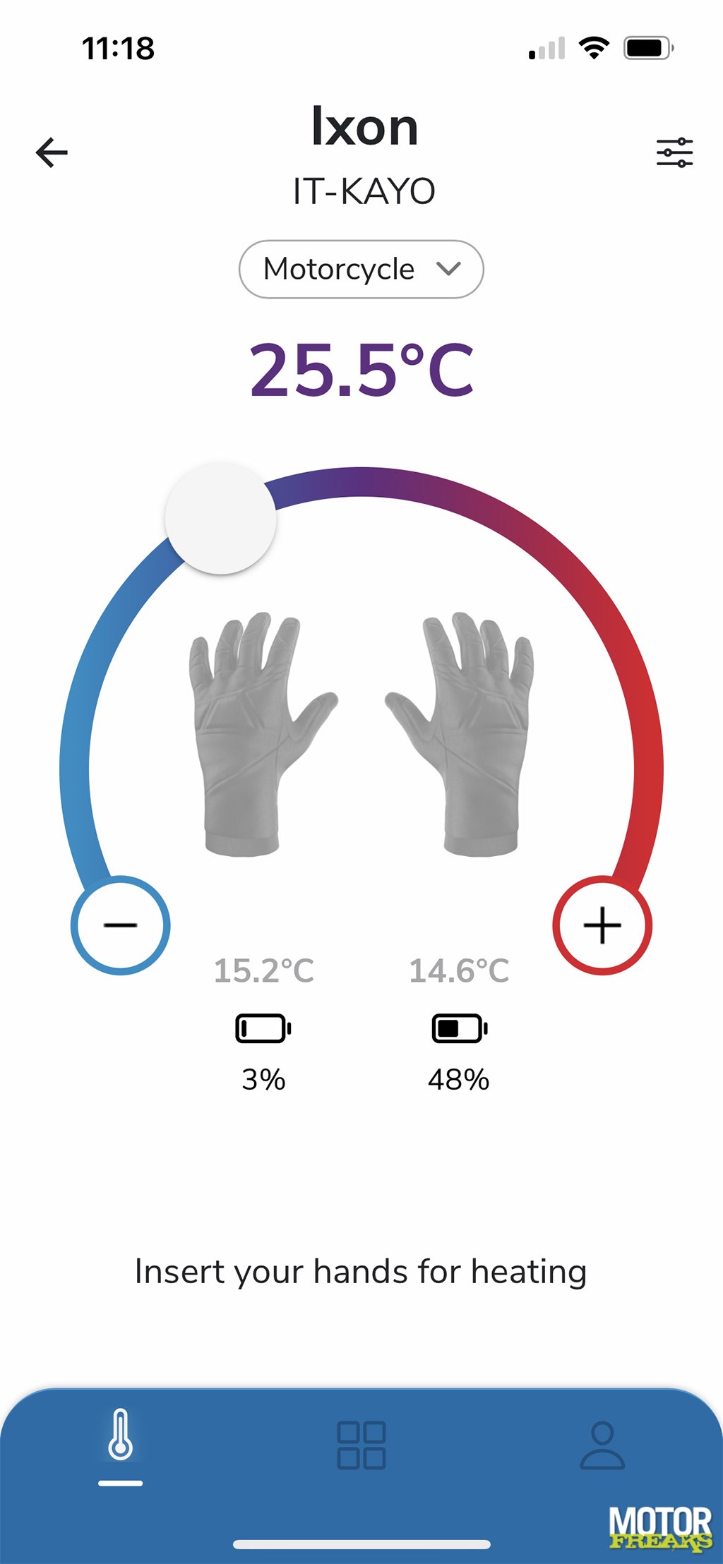 Ook wat de temperatuurhuishouding zijn we erg te spreken over de IT-KAYO. Een ingestelde temperatuur van 25,5 °C in de supergemakkelijke Clim8 app was bij temperaturen van tussen de 5 en 10 °C voldoende om de handen op temperatuur te houden. Dat bleek ook tijdens de perstest van de Suzuki GSX-8S in het bergachtige Verdon in Frankrijk, waar het ’s ochtends slechts een graadje of 7 was en bij de fotoshoot ik haast iedereen klaagde over de kou (en z’n handschoenen bij het blok legde om op te warmen), behalve wij. Ook de collega's die met normale winterhandschoenen reden.