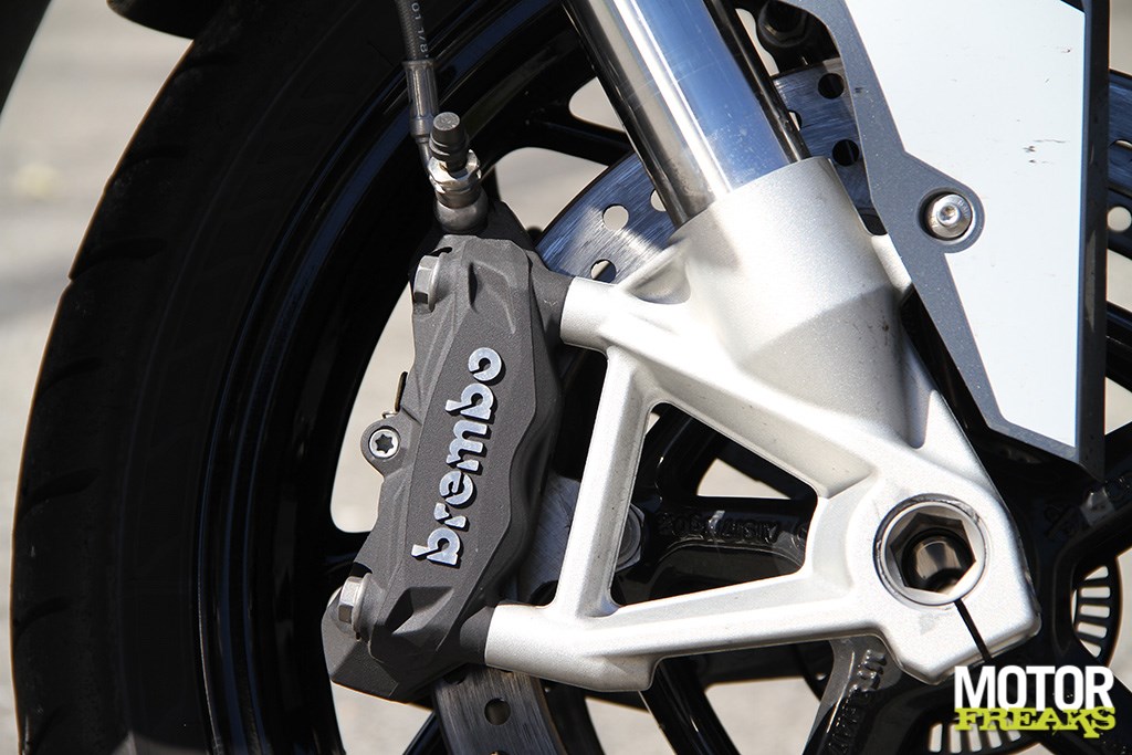 | Voorrem | dubbele schijf 320 mm, Brembo 4-zuiger M50 Monobloc remklauw, Bosch C-ABS | Dubbele schijf 320 mm, vierzuiger radiale remklauw, ABS |