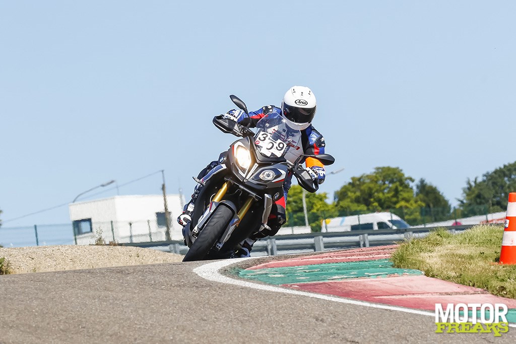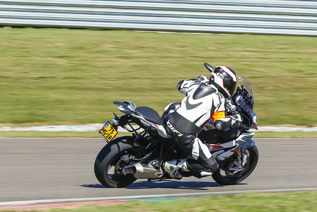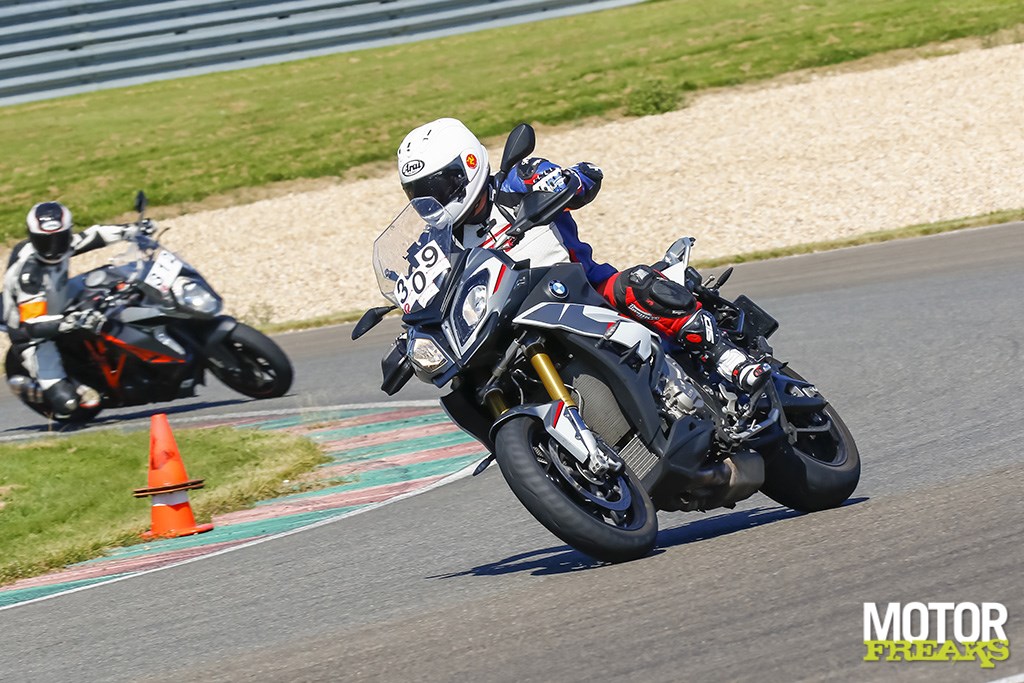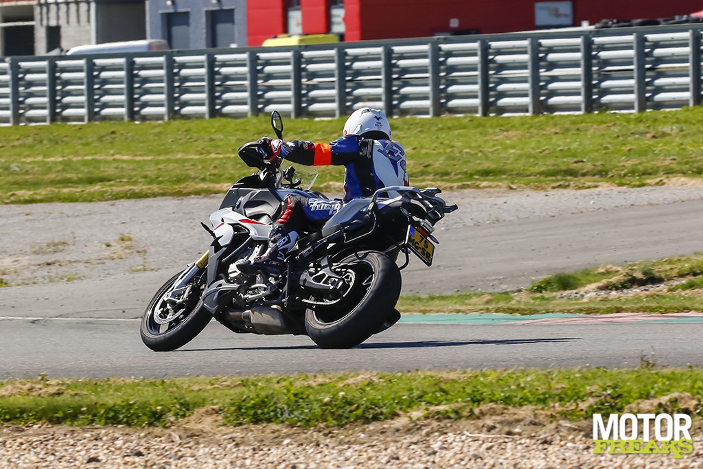 Maar nu het volgende: dat heeft BMW ook. Die heeft er zelfs nog minder (maar is wel uit te breiden als je dat zou willen), te weten ‘Street’ en ‘Dynamic’, met naar wens meer of minder poppetjes of koffertjes. Die tellen we niet mee, want dat heeft alleen invloed op de rijhoogte en niet op de wegligging. De demping echter is in tegenstelling tot de KTM gewoon vastgesteld op een bepaalde waarde. Geen sensoren en ‘adaptief’ denken, maar gewoon méér of mínder. En daar kunnen we blijkbaar een stuk beter mee leven, want wat we ook proberen, de BMW blijft snaarstrak en dat levert ‘m een flink pak punten op. Zeker op het circuit waar we een volle